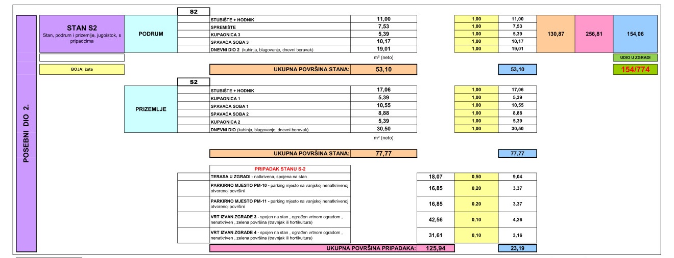Es verfügt über zwei Parkplätze und einen Garten von 74,17 m2.
