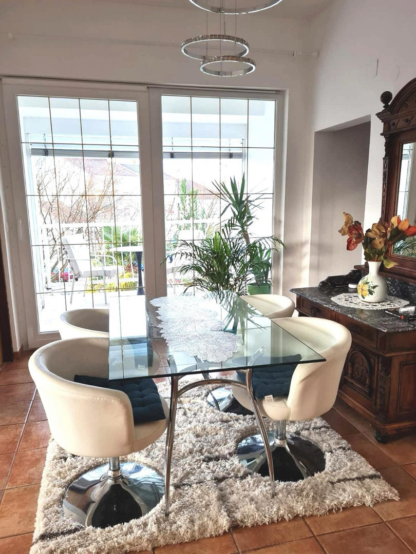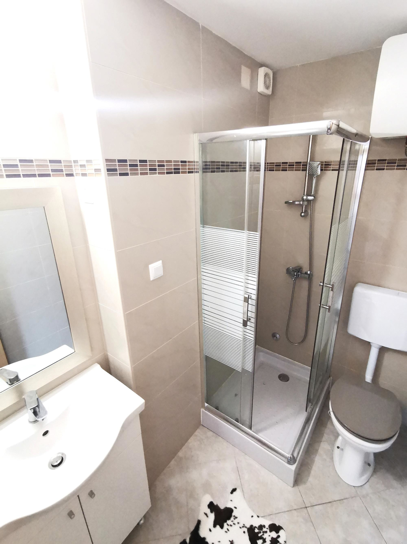 – Wohnung 1: zwei Schlafzimmer, Wohnzimmer + Küche + Esszimmer, Speisekammer, zwei Badezimmer und Loggia.