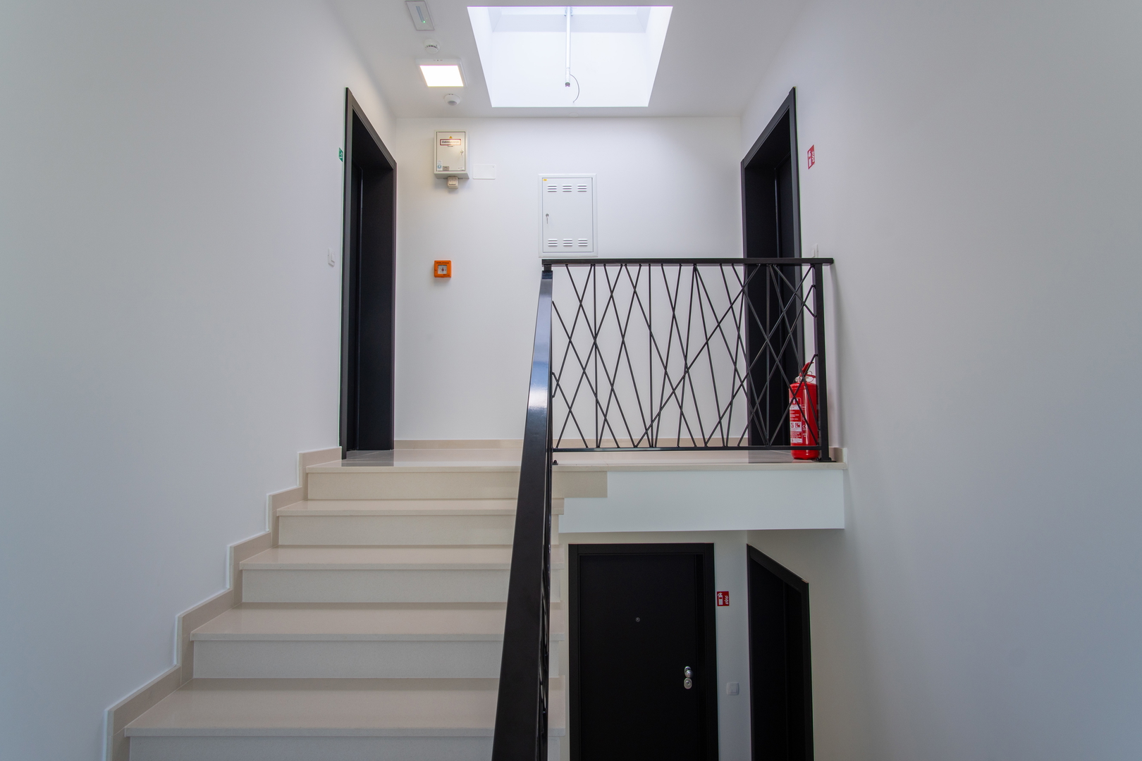 Es besteht aus: zwei Schlafzimmern, Wohnzimmer + Küche + Esszimmer, Flur, Abstellraum, zwei Badezimmern und zwei Terrassen.