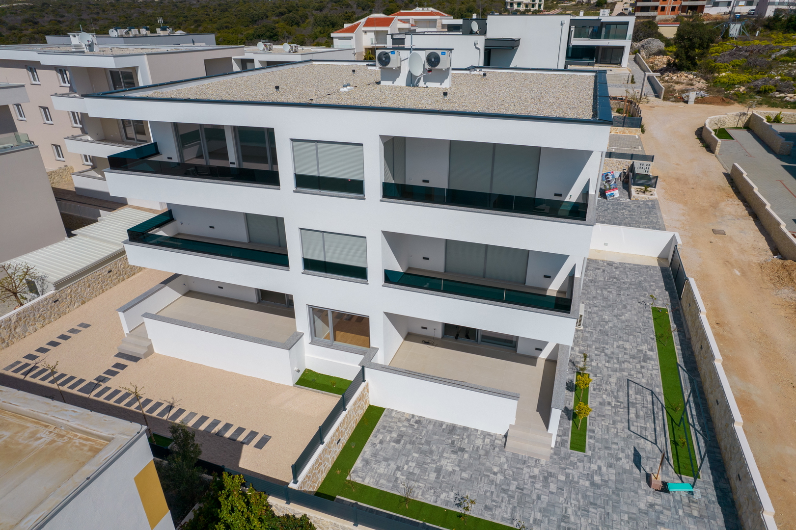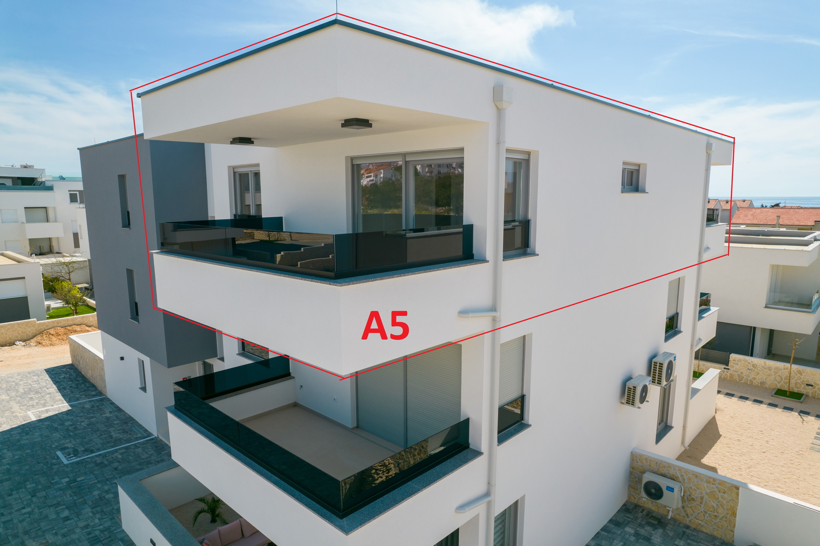 Es befindet sich in attraktiver Lage in einer neuen Elitesiedlung neben Luxusvillen, in prestigeträchtiger Lage, nur 150 m vom Meer und dem beliebten Strand „Babe“ entfernt, das Zentrum von Novalja und berühmte Restaurants erreichen Sie zu Fuß entlang der Promenade am Meer in ca. 20 Minuten. Die Entfernung zum Geschäft, zur Bäckerei und zum Café beträgt 200 m.