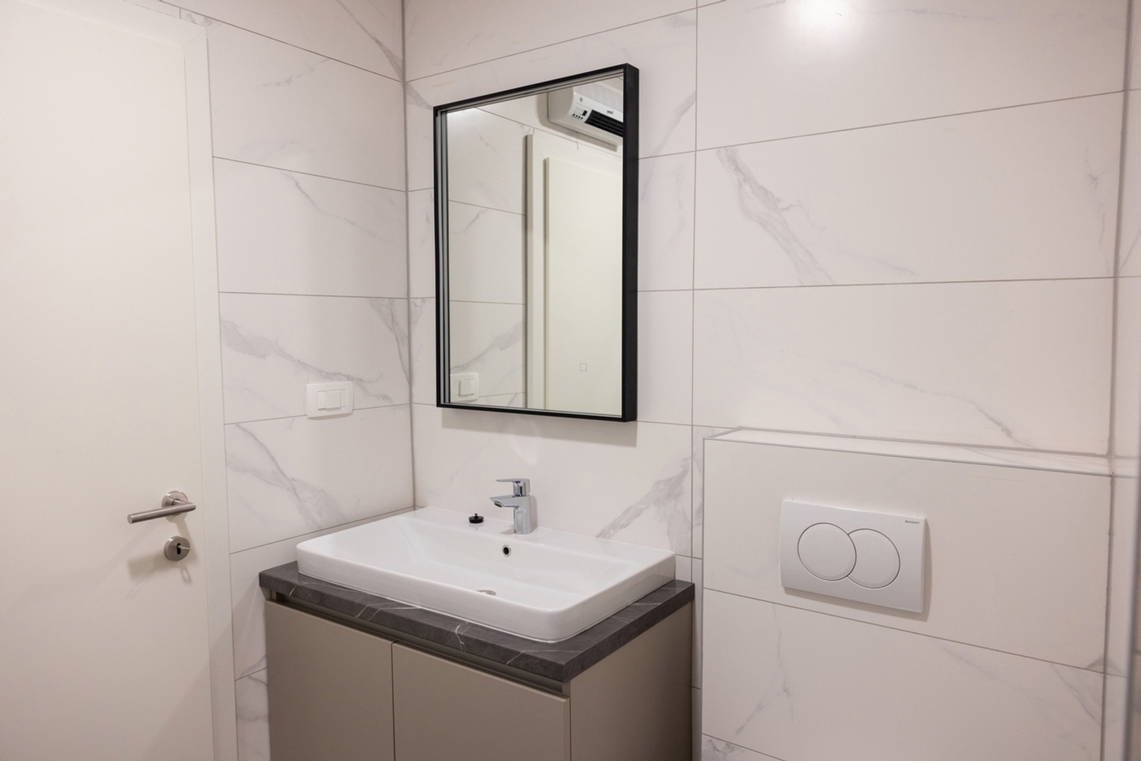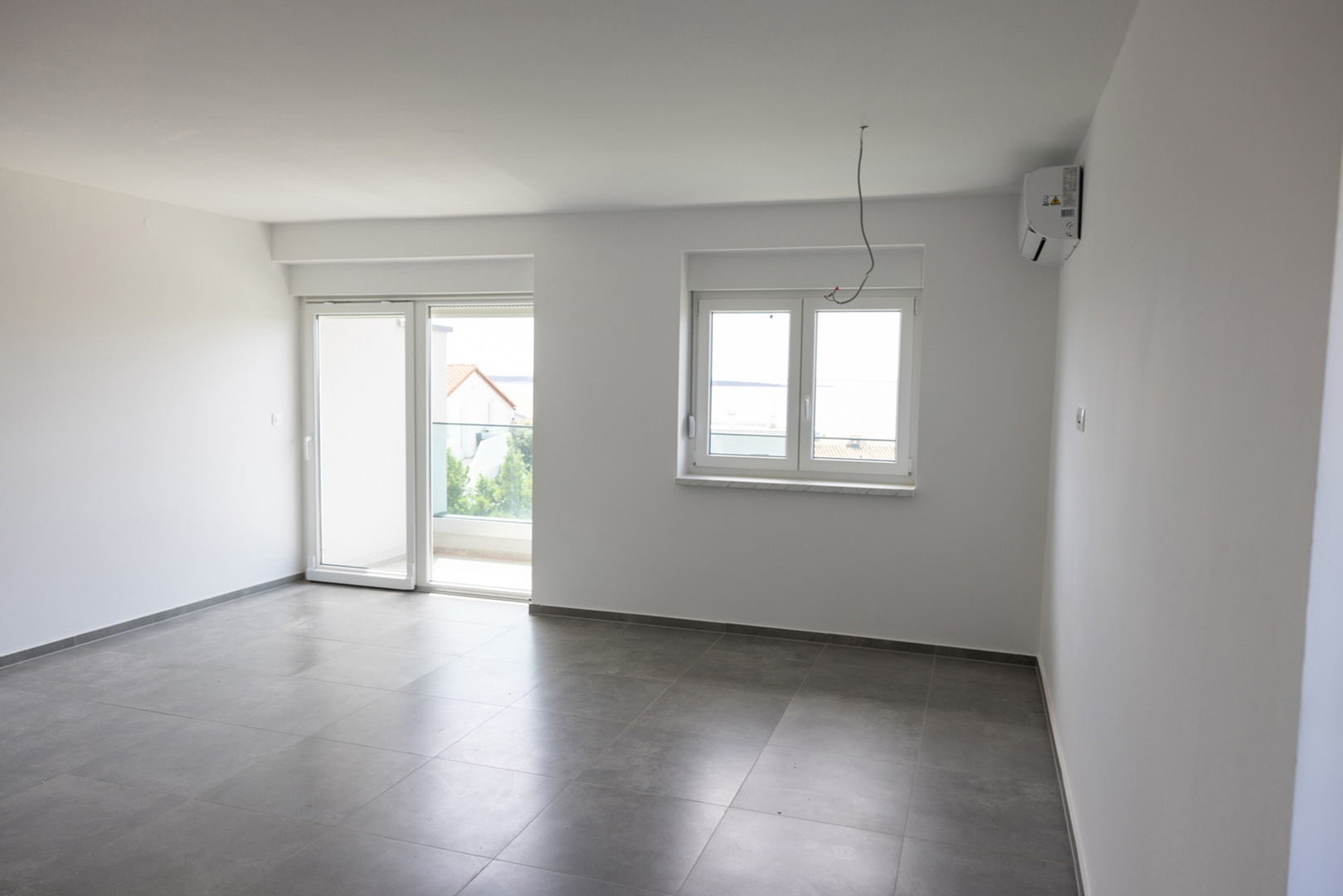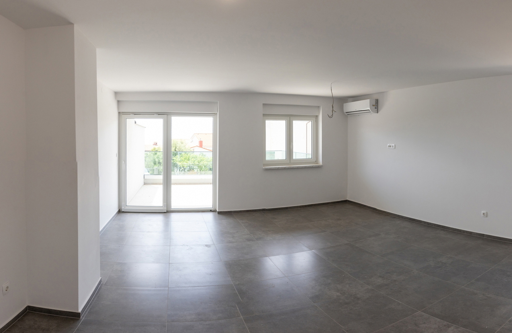 Es besteht aus: zwei Schlafzimmern, Wohnzimmer + Küche + Esszimmer, Flur, Hauswirtschaftsraum, zwei Badezimmern und einer Loggia.