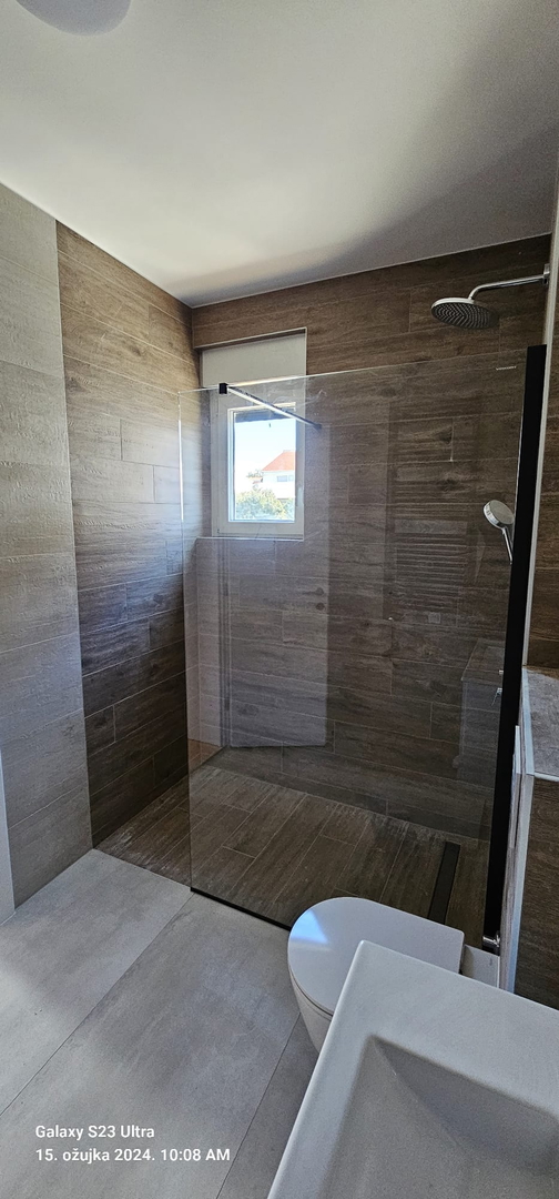 Hochwertige Konstruktion, Stahlbetonkonstruktion, Wände – Porotherm 25 Profi, Trennwände – Porotherm 10 Profi, Flachdach 15 cm XPS, Außenwände 8 cm EPS, Finish Acrylputz, Keramik, Glaszaun auf der Terrasse auf ALU-Stützen, Innenbereich einflügelige Zimmerei-Holztür aus Natureiche, einbruchhemmende und feuerfeste Eingangstür, äußere PVC-Mehrkammer-Zimmerei, 3 Scheiben, Außenfarbe anthrazit, innen weiß, Rollo-Moskitonetze, elektrisch bewegliche Jalousien an Hubschiebewänden, innenliegende Steinbänke, Anthrazitfarbene Außensitzbänke mit Dichtung, Treppenaufgang mit Naturstein gepflastert, Edelstahlzaun, Zimmerbodenbelag Dreischicht-Eichenparkett, Klimaanlage in allen Räumen und Wohnzimmer, Badboden- und Wandbelag Keramikfliesen 60 cm x 120 cm, Hansgrohe unter -Gips-Duschsystem + Armaturen, Premium-Waschbecken, GEBERIT-Einbauspülkasten + spülrandlose Toilettenschüssel mit Soft-Close-Board, Leiterheizkörper, Rasenfläche mit gepflanzten Zitrusbäumen, gepflasterter Parkplatz, Vorbereitung der Installation für Ladegeräte für Elektrofahrzeuge, Video Gegensprechanlage, TV-Vorbereitung in den Zimmern…