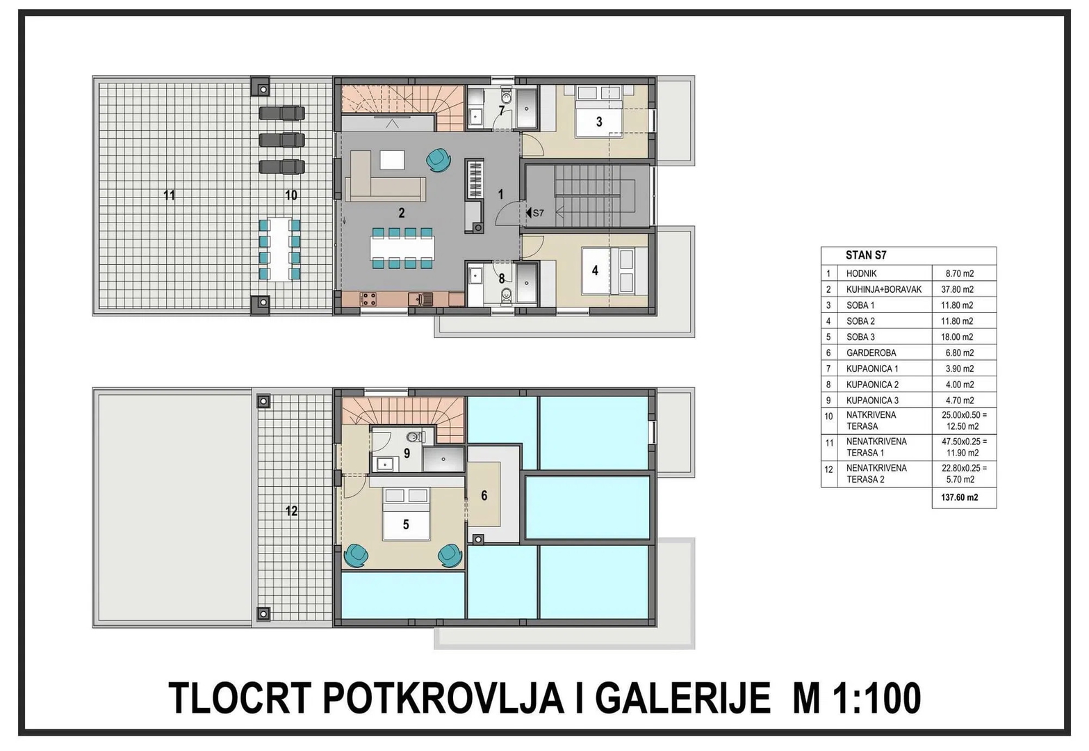 Pag – Mandre, Maisonette-Wohnung mit drei Schlafzimmern und 137,60 m2 zu verkaufen im Dachgeschoss eines im Bau befindlichen Wohngebäudes mit insgesamt sieben Wohnungen, hochwertige Bauweise, geplanter Einzug Sommer 2026.