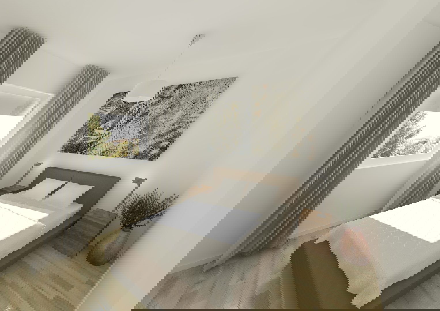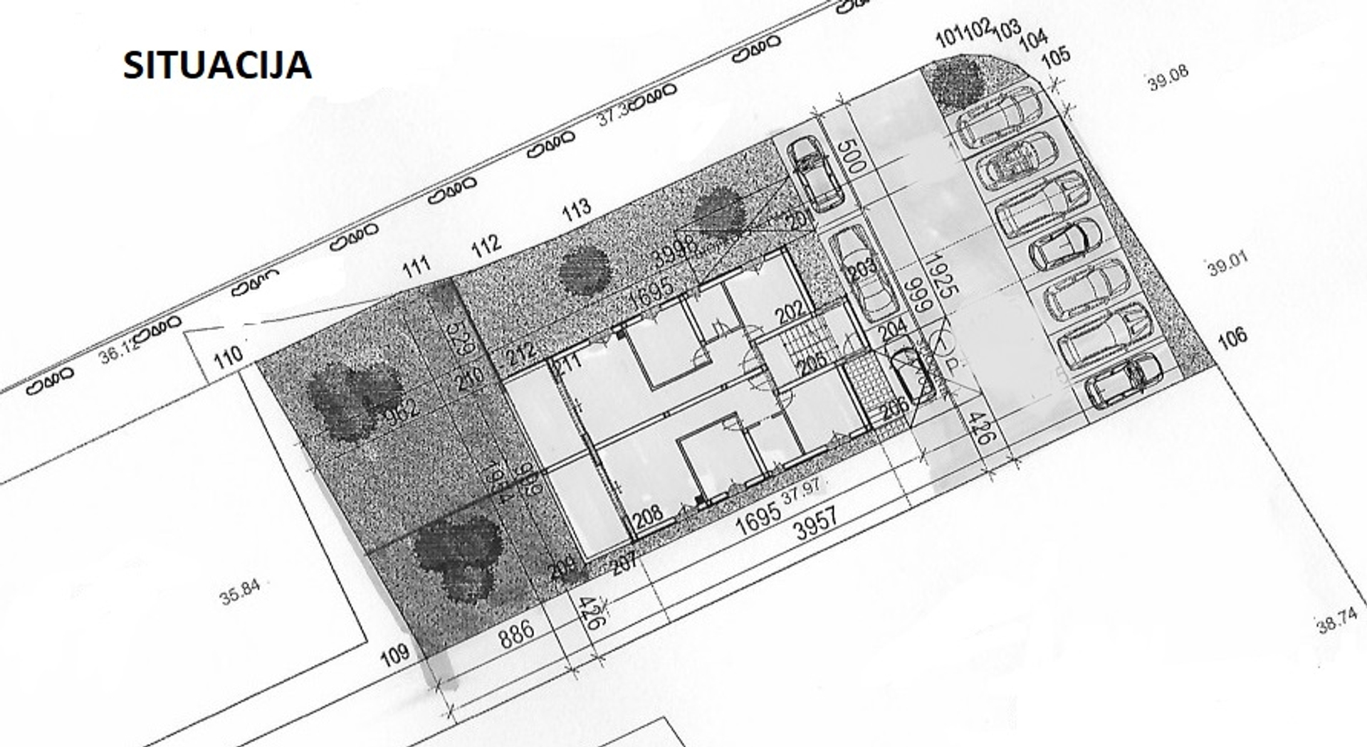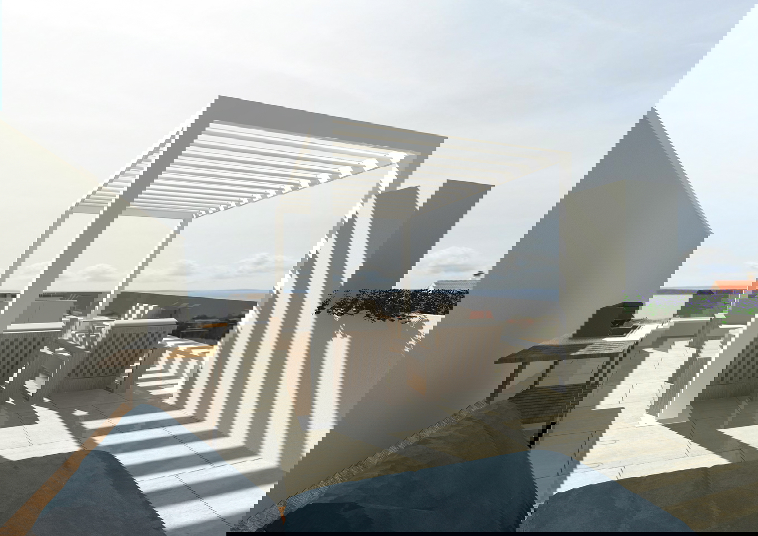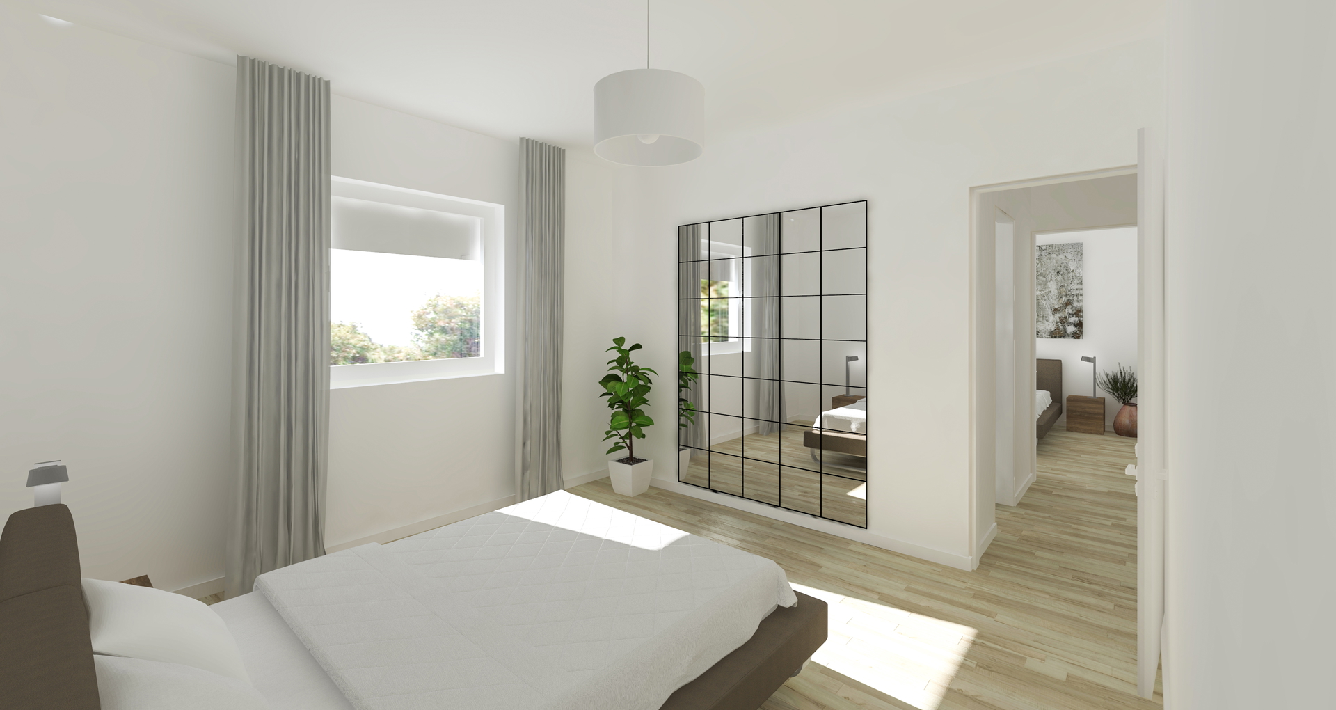 Es besteht aus: zwei Schlafzimmern, Wohnzimmer + Küche + Esszimmer, Flur, Badezimmer und überdachter Terrasse.