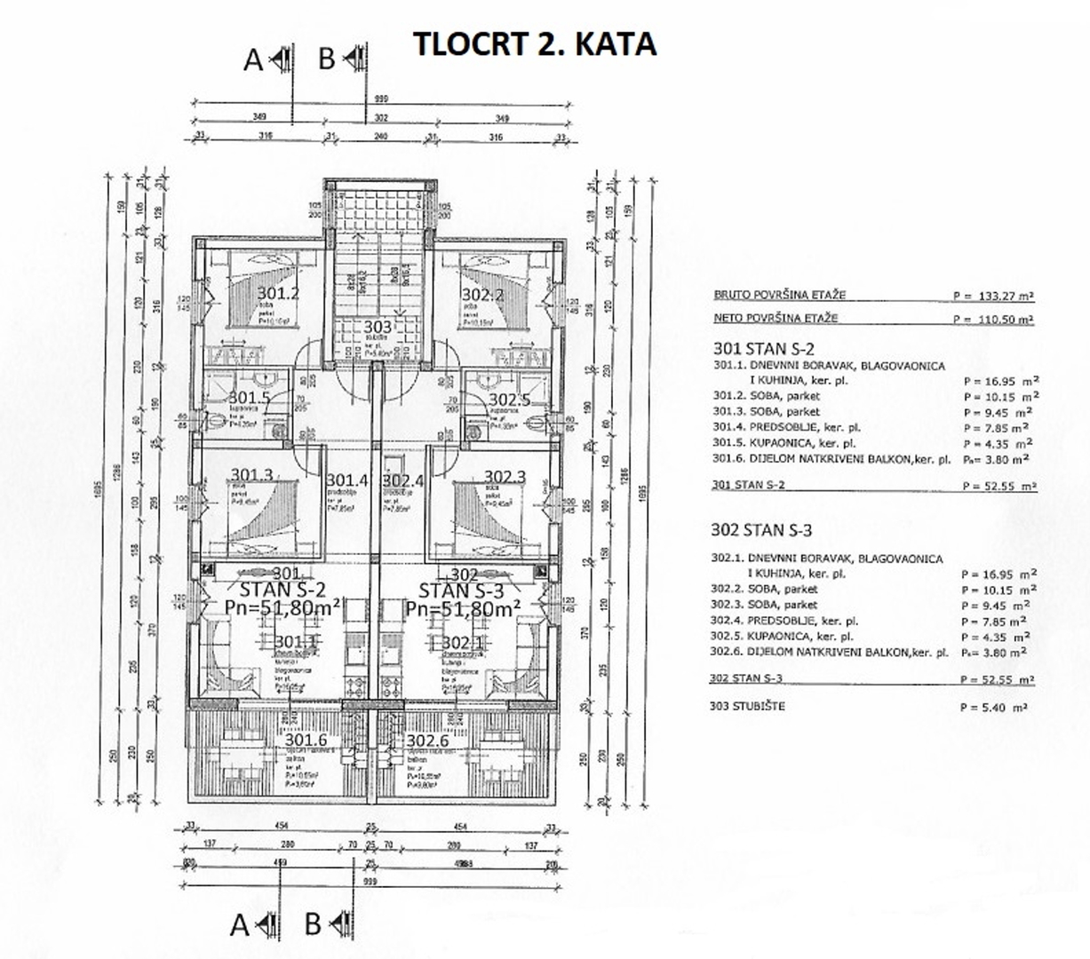 Pag – Mandre, Zweizimmerwohnung von 67,35 m2 zum Verkauf im zweiten Stock eines Wohngebäudes mit insgesamt sechs Wohnungen aus dem Jahr 2023.
