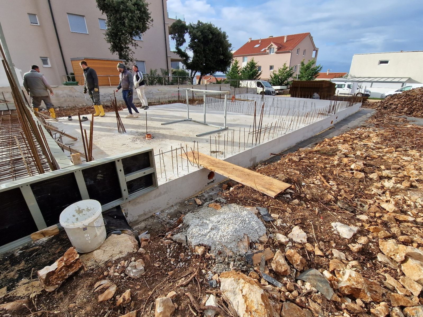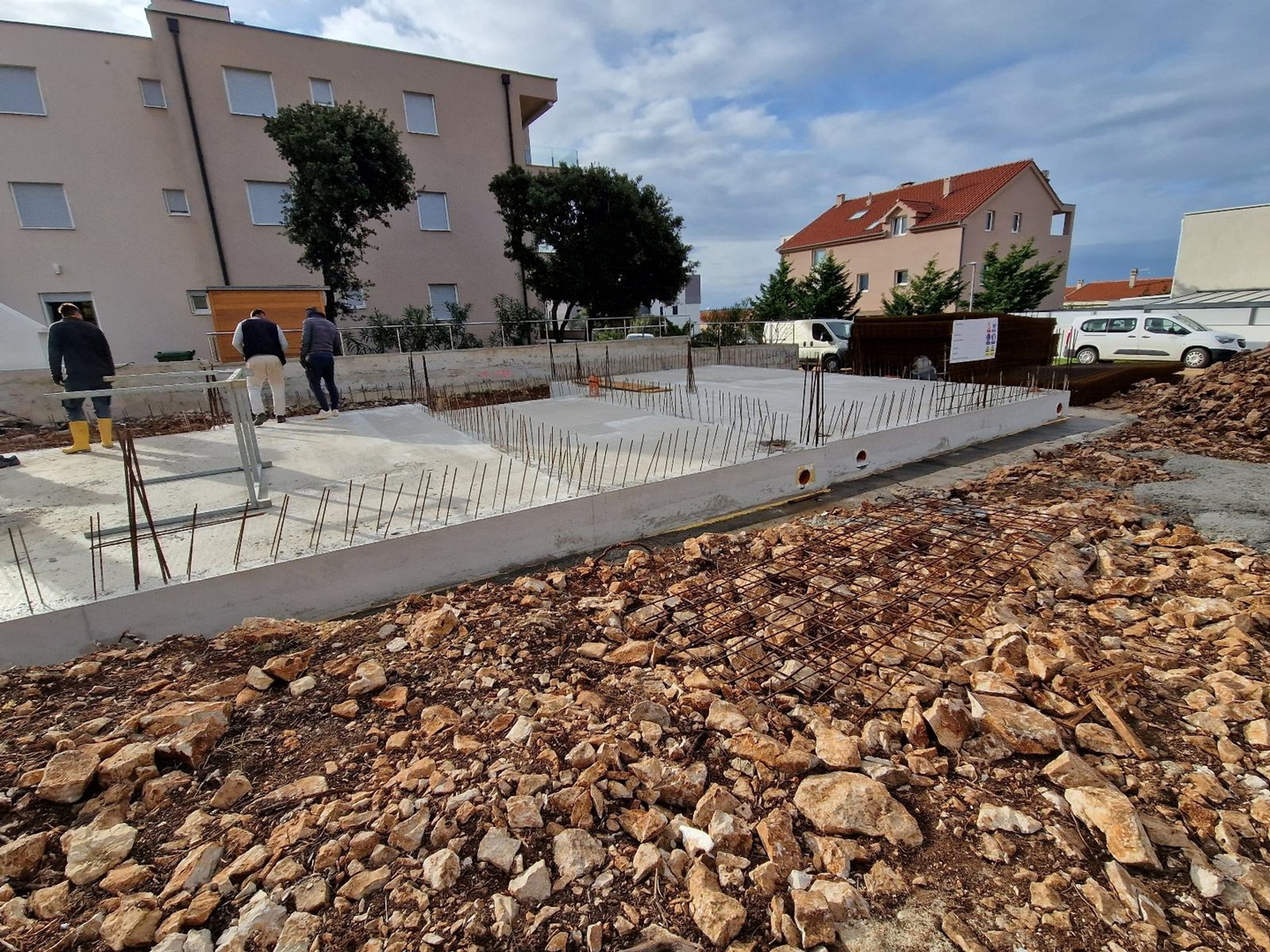 Pag – Mandre, zum Verkauf steht eine zweistöckige Zweizimmerwohnung mit 75 m2 in einem im Bau befindlichen Wohngebäude mit insgesamt drei Wohnungen, geplanter Einzug Ende 2026. Hochwertige Bauweise, elektrische Fußbodenheizung, Gegensprechanlage, elektrische Jalousien, Vorbereitung zum Aufladen von Elektroautos, Klimaanlage in jedem Zimmer, hochwertige Sanitärkeramik, Außenschreinereiarbeiten mit Dreifachverglasung, Keramik in der gesamten Wohnung usw.