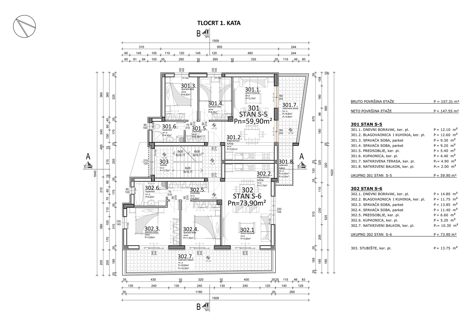 Pag – Mandre, Zweizimmerwohnung mit 76,9 m2 zu verkaufen im ersten Stock eines im Bau befindlichen Wohngebäudes mit insgesamt acht Wohnungen, hochwertige Bauweise.
