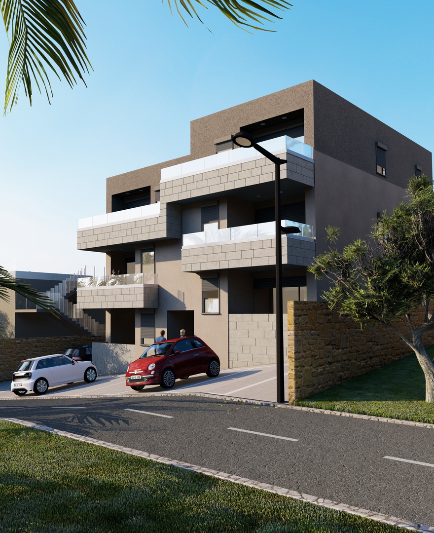 Pag – Mandre, Zweizimmerwohnung mit 90,30 m2 zum Verkauf im ersten Stock eines Wohngebäudes mit insgesamt acht Wohnungen, Baujahr 2023.