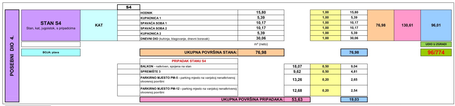Es verfügt über zwei Parkplätze und einen Abstellraum von 9,62 m2.