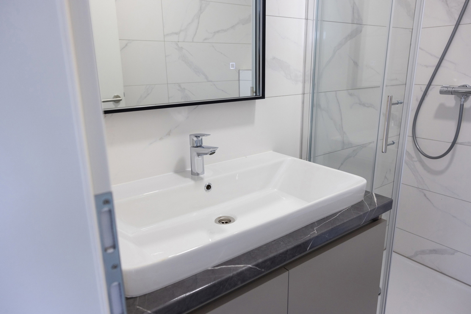 Es besteht aus: zwei Schlafzimmern, Wohnzimmer + Küche + Esszimmer, Flur, Hauswirtschaftsraum, zwei Badezimmern und einer Loggia.