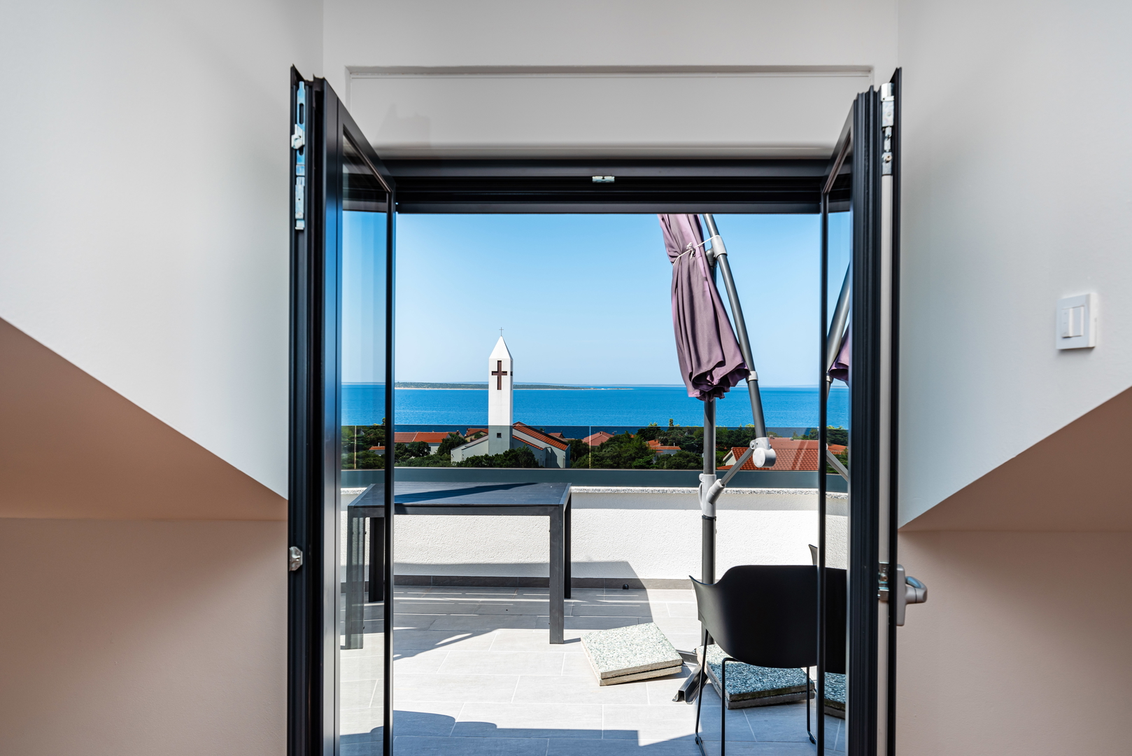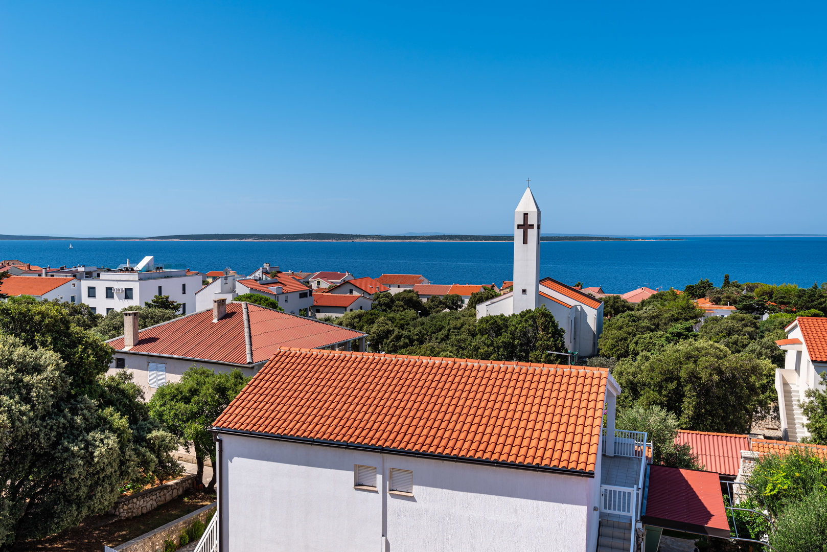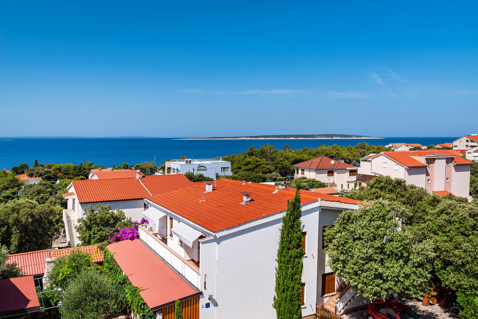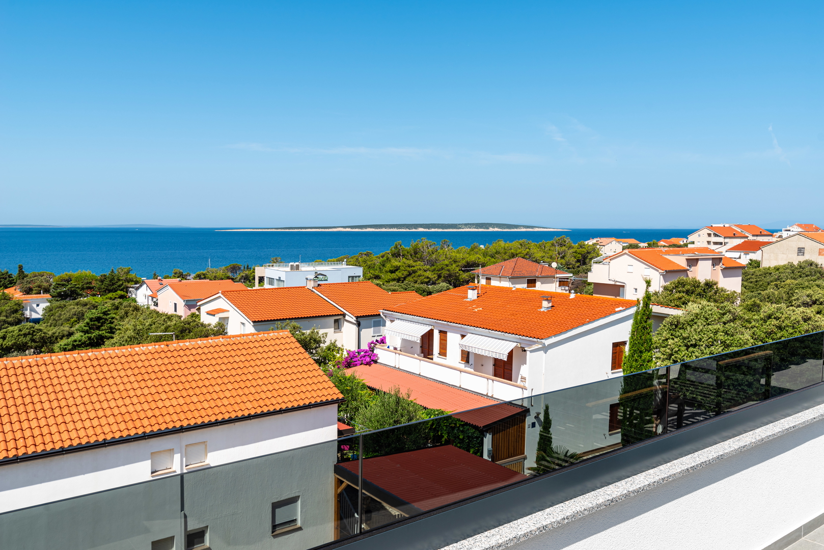 Pag – Mandre, Dreizimmerwohnung von 146,37 m2 zum Verkauf im Dachgeschoss eines 2022 erbauten Wohnhauses mit insgesamt sieben Wohnungen, komplett neu eingerichtet.