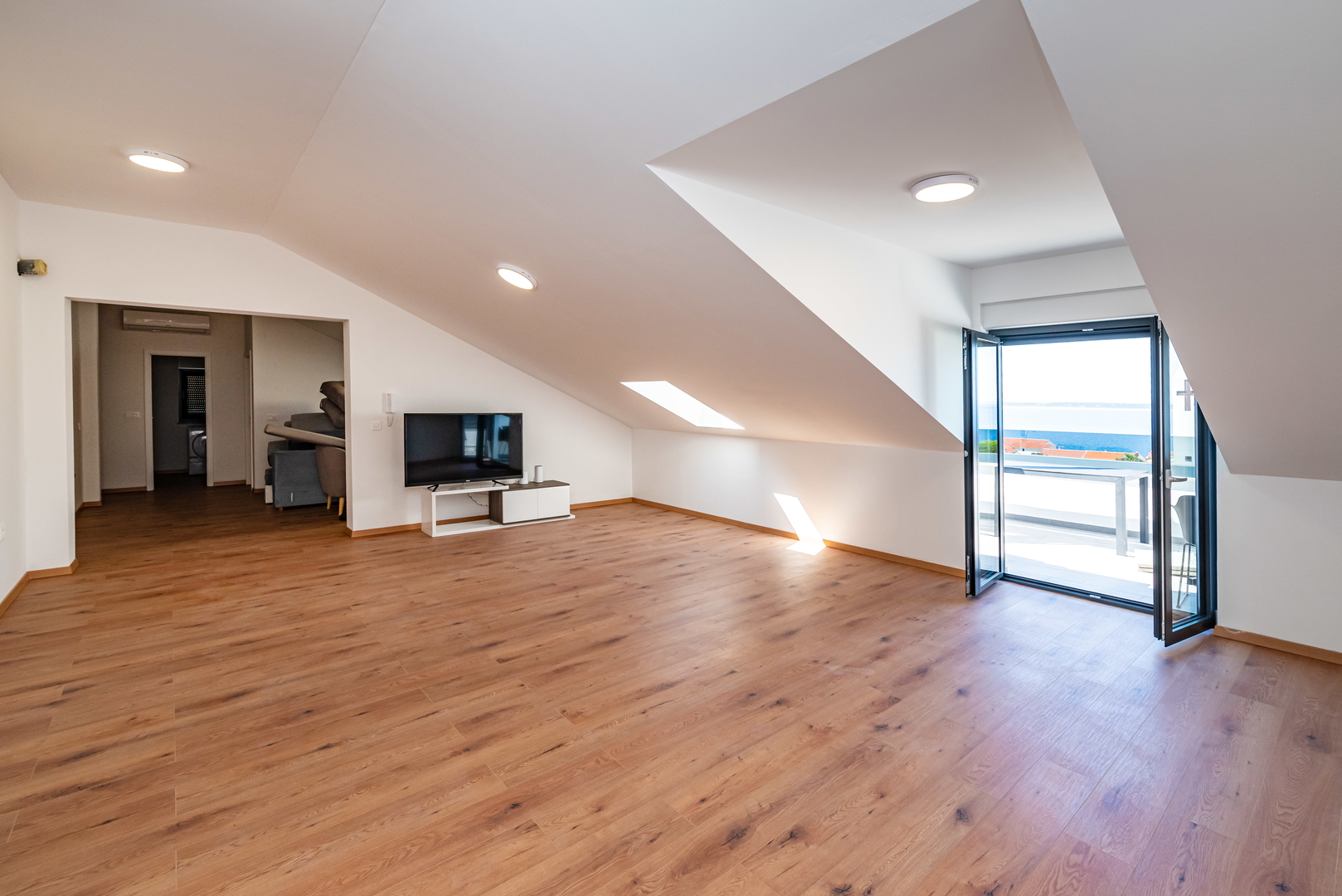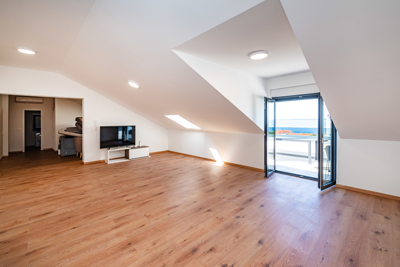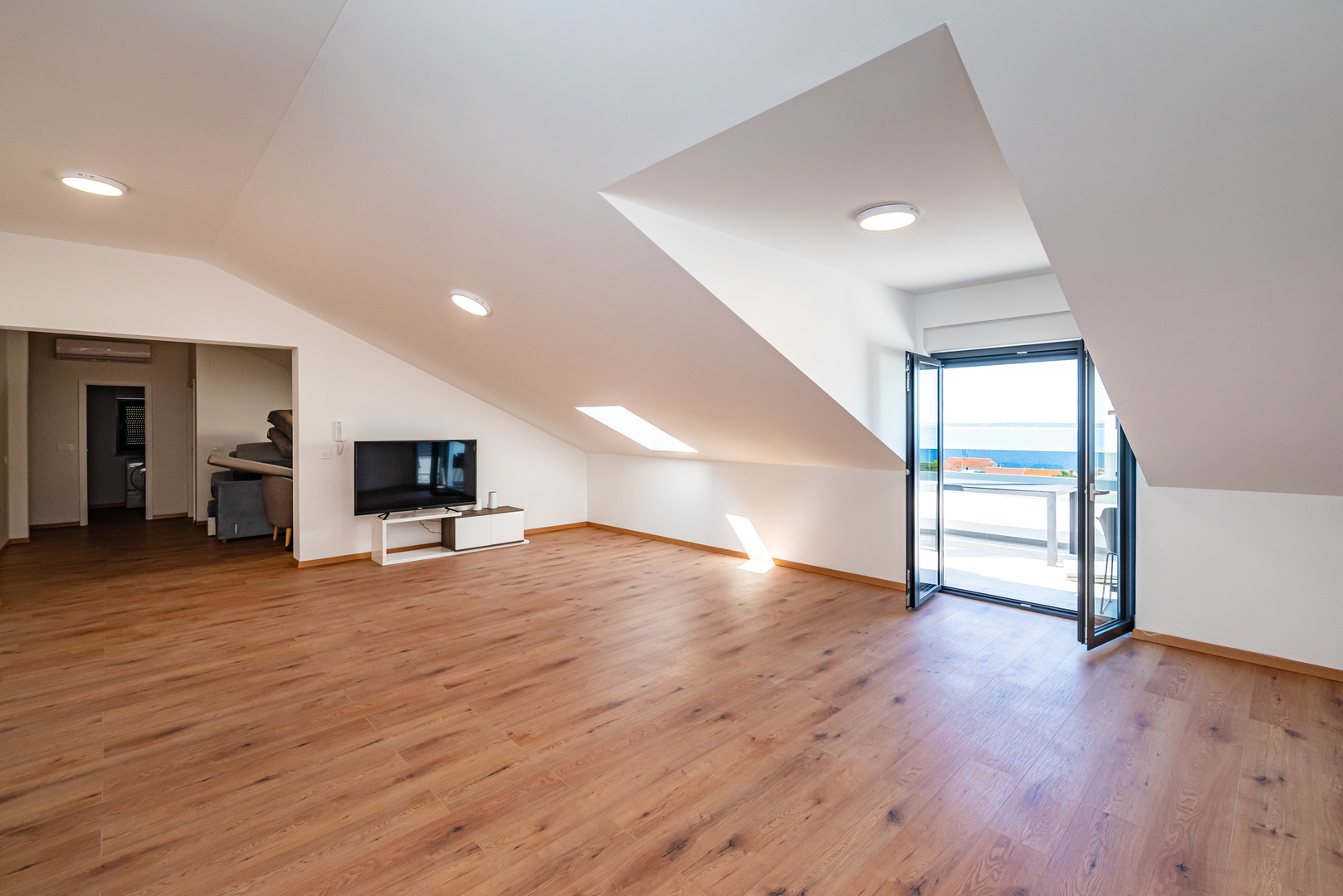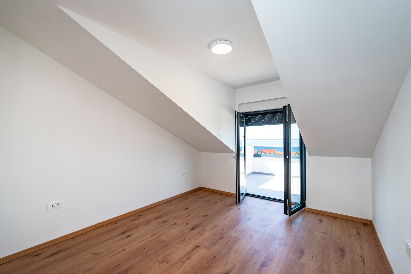 Pag – Mandre, Dreizimmerwohnung von 146,37 m2 zum Verkauf im Dachgeschoss eines 2022 erbauten Wohnhauses mit insgesamt sieben Wohnungen, komplett neu eingerichtet.