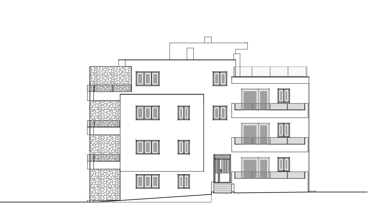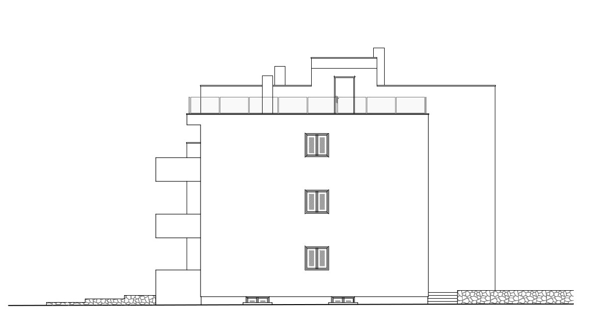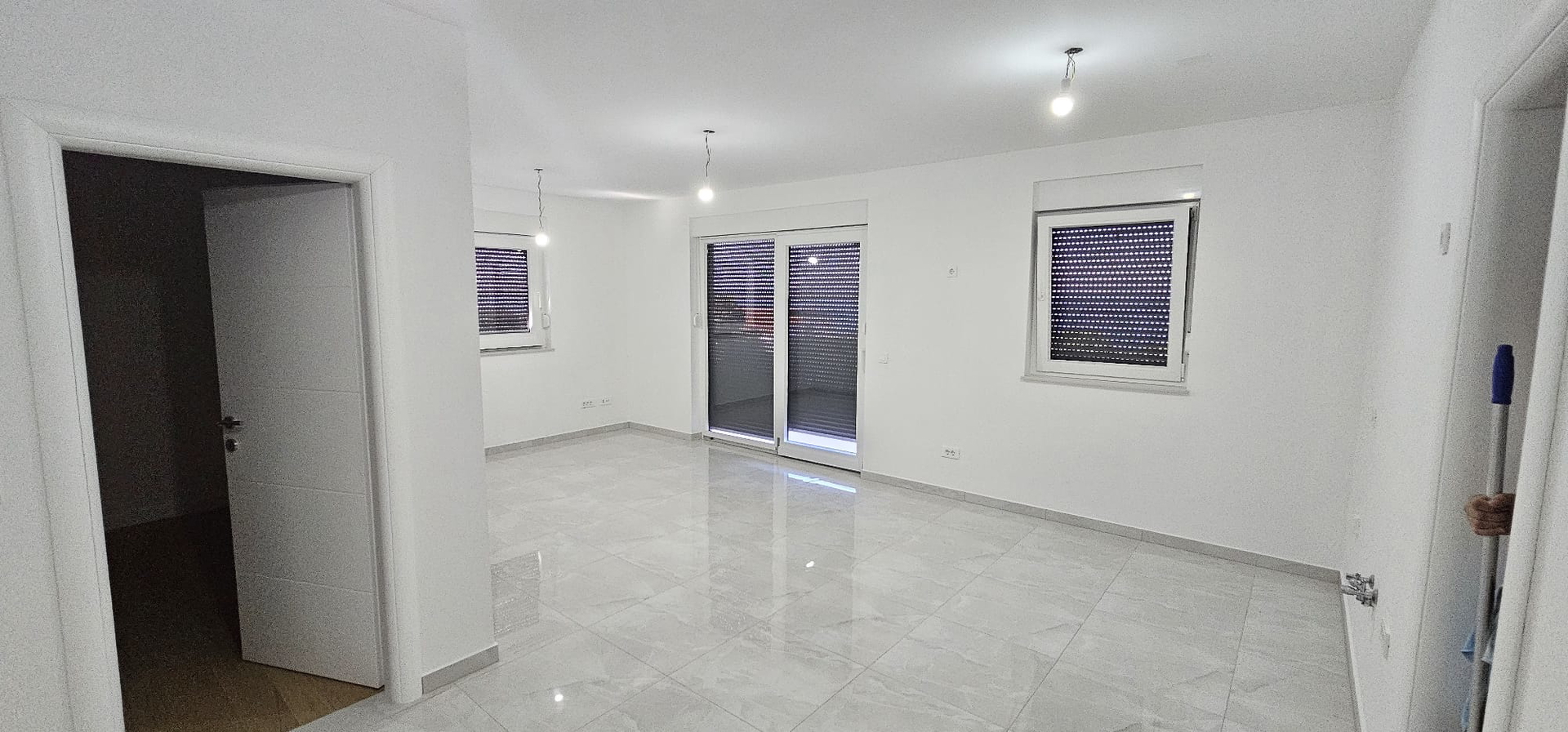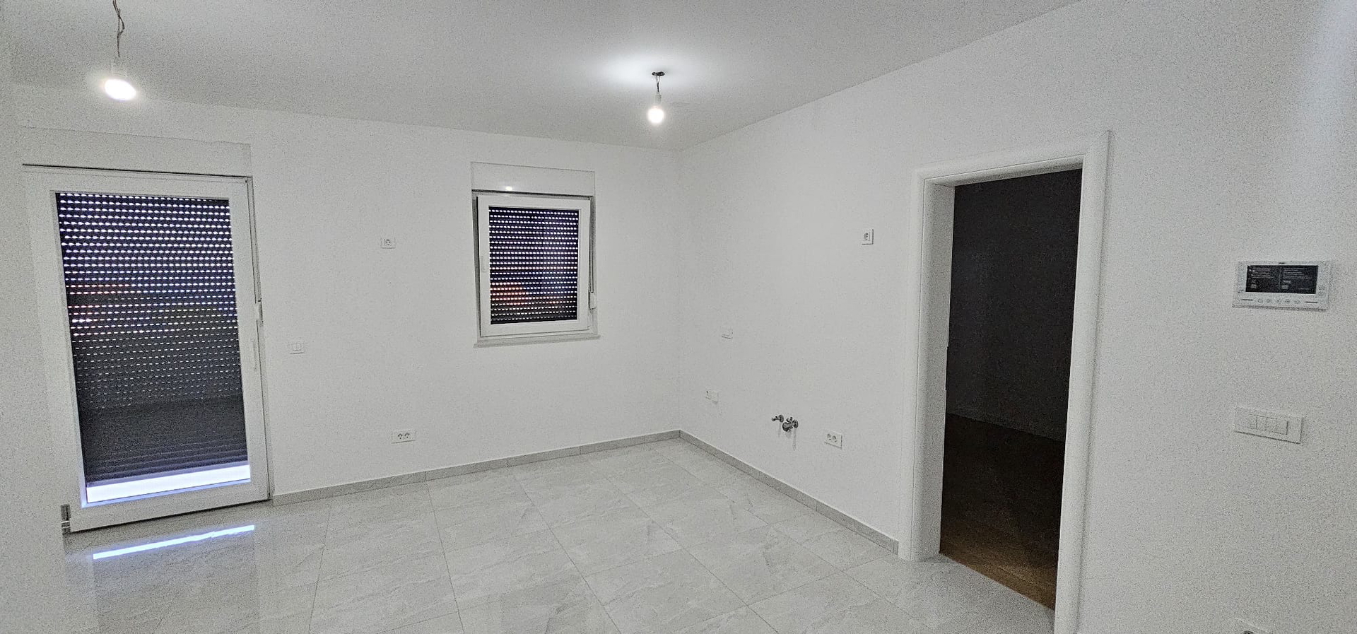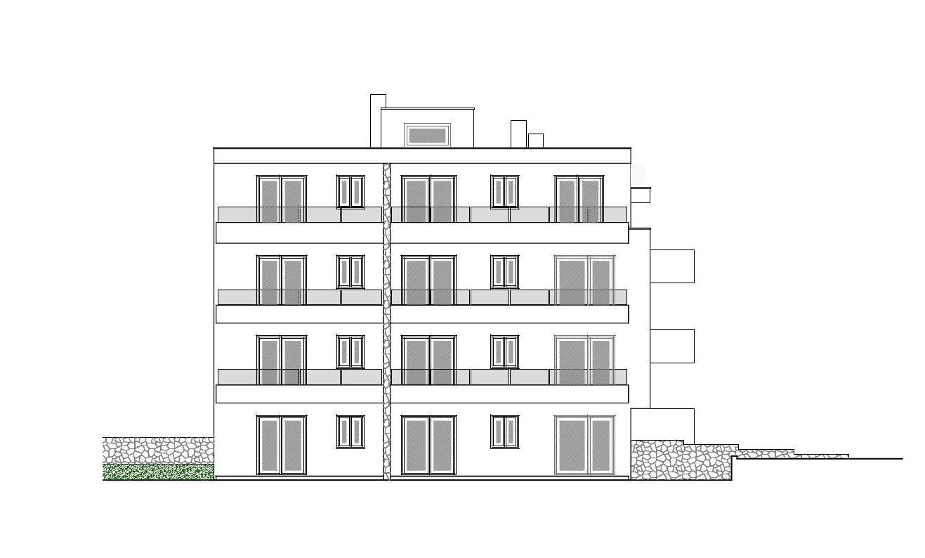 Es besteht aus: zwei Schlafzimmern, Wohnzimmer + Küche + Esszimmer, Badezimmer und überdachter Terrasse.