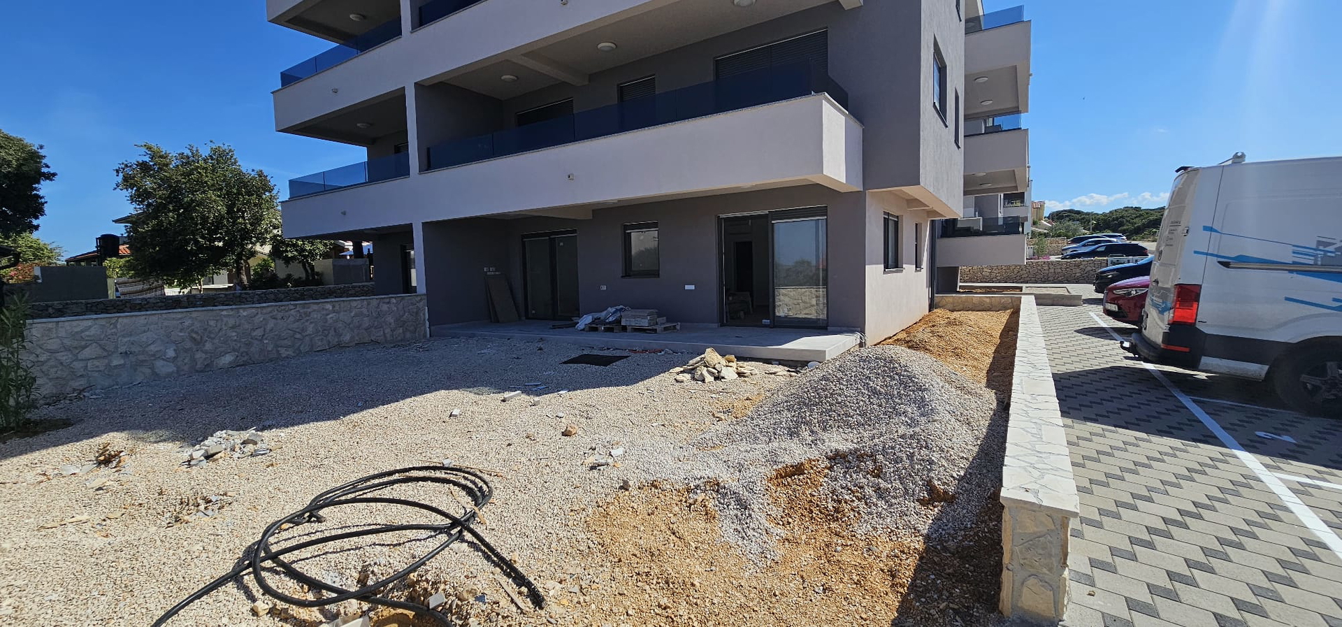 Pag – Mandre, Zweizimmerwohnung von 75,1 m2 zum Verkauf im Erdgeschoss eines 2023 erbauten Wohngebäudes mit insgesamt elf Wohnungen, hochwertige Bauweise.
