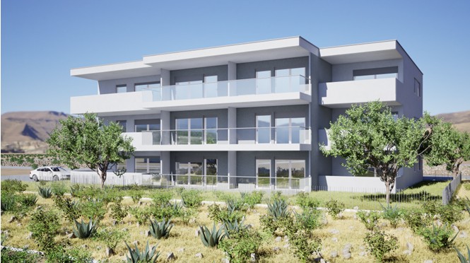 Pag – Povljana, Ein-Zimmer-Wohnung mit 36,65 m² im zweiten Stock eines Wohngebäudes mit insgesamt fünfzehn im Bau befindlichen Wohnungen zu verkaufen, geplanter Einzug Sommer 2026.
