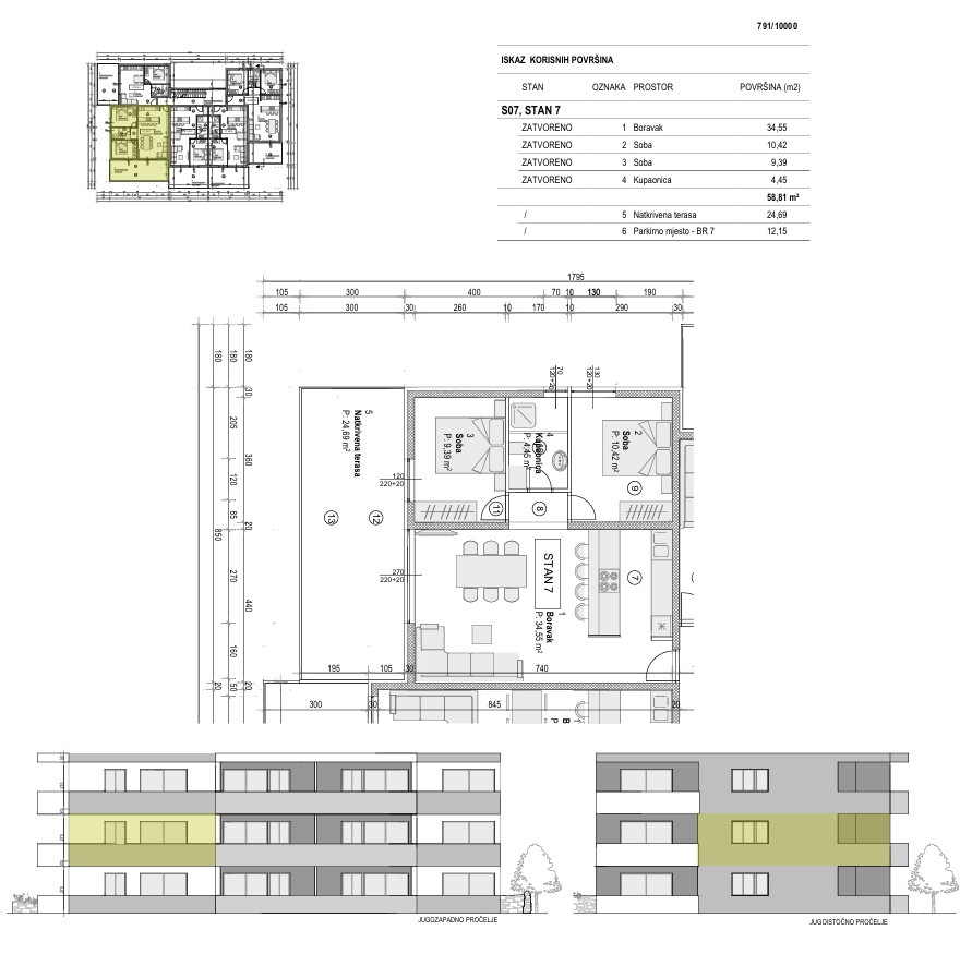Sehen Sie sich den Grundriss der Wohnung S7 an.