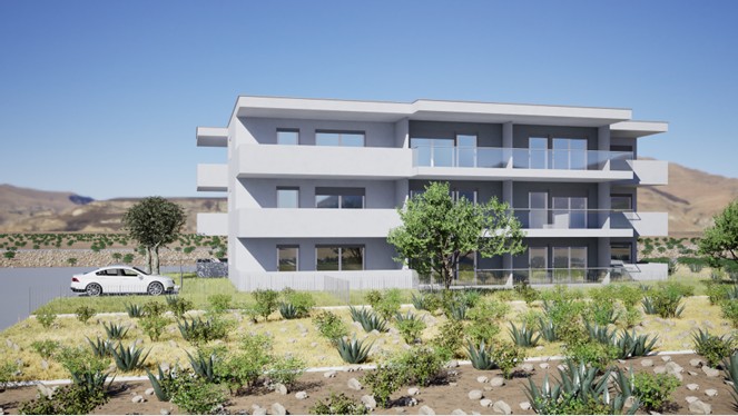 Pag – Povljana, Zweizimmerwohnung mit 60,24 m² im ersten Stock eines Wohngebäudes mit insgesamt fünfzehn im Bau befindlichen Wohnungen zu verkaufen, geplanter Einzug Sommer 2026.