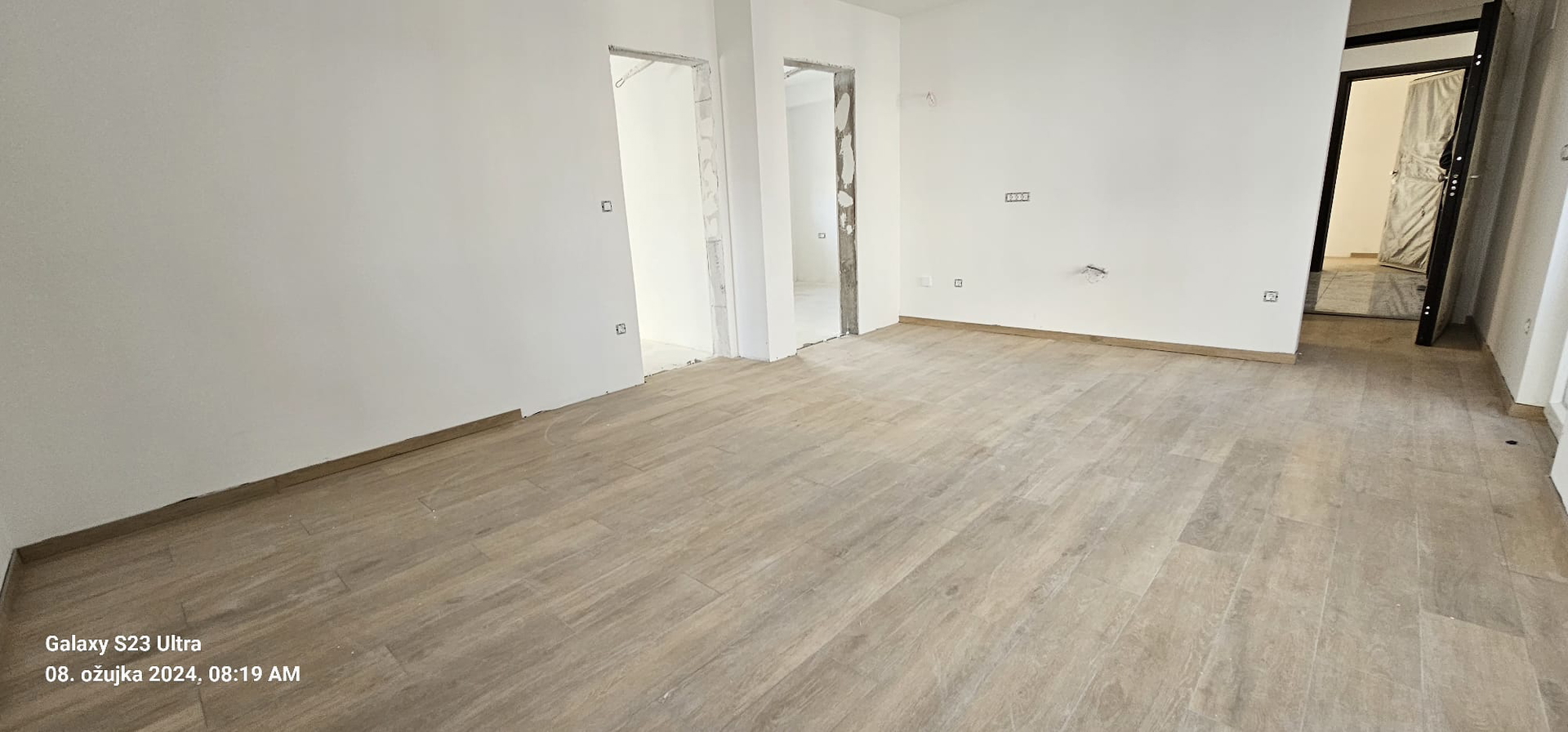 Es besteht aus: zwei Schlafzimmern, Wohnzimmer + Küche + Esszimmer, Flur, Badezimmer und Terrasse.