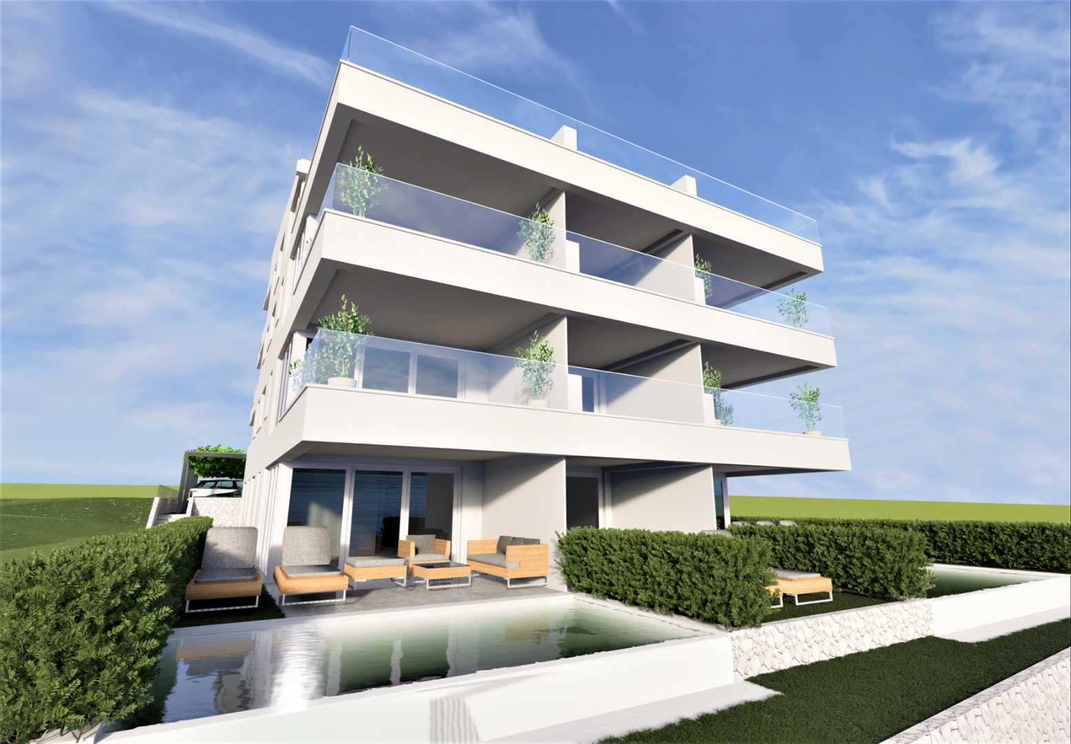 Pag – Povljana, luxuriöse Einzimmerwohnung von 46,64 m2 zum Verkauf im ersten Stock eines 2022 erbauten Wohngebäudes mit insgesamt vierzehn Wohnungen, hochwertige Bauweise.