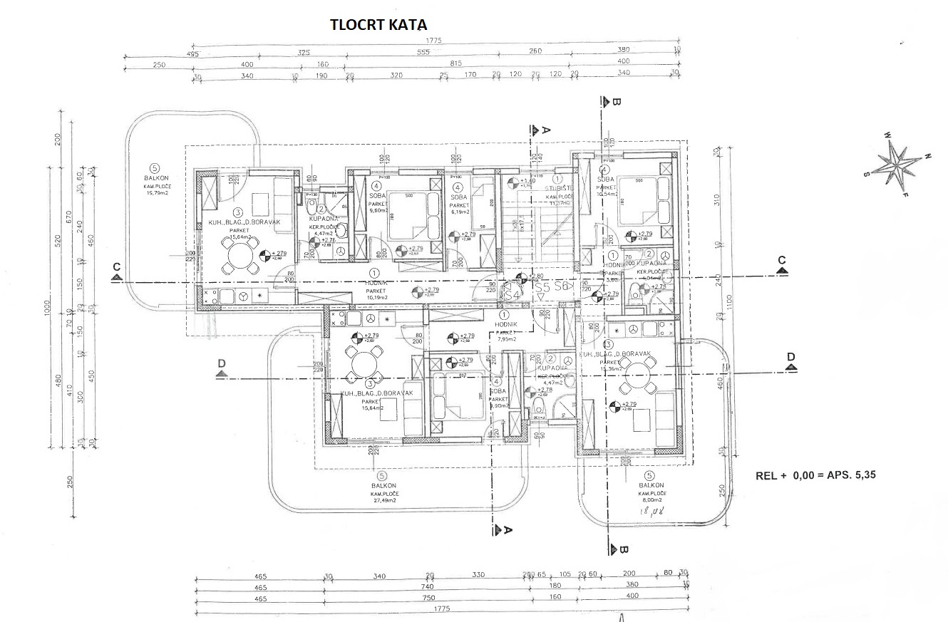 Es besteht aus: einem Schlafzimmer, Wohnzimmer + Küche + Esszimmer, Flur, Badezimmer und Terrasse.