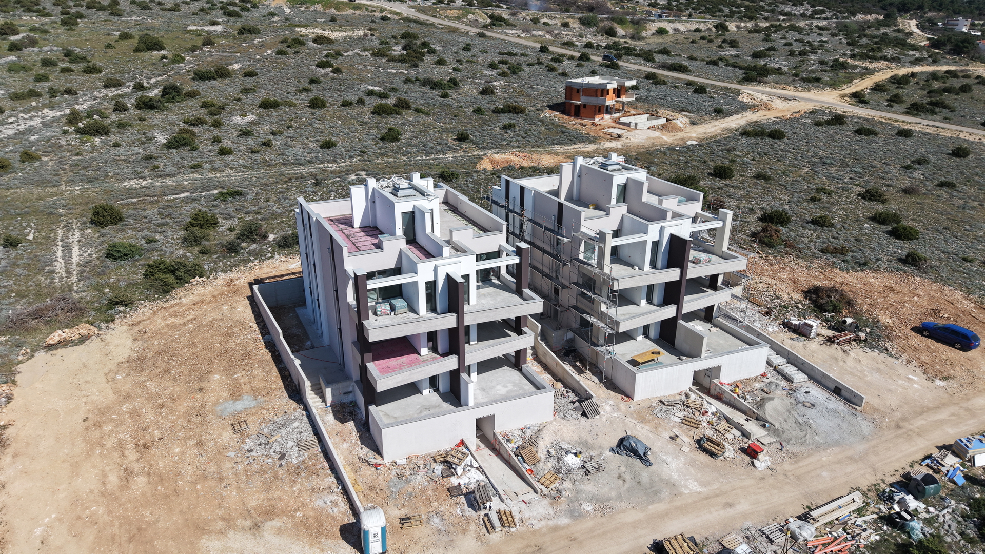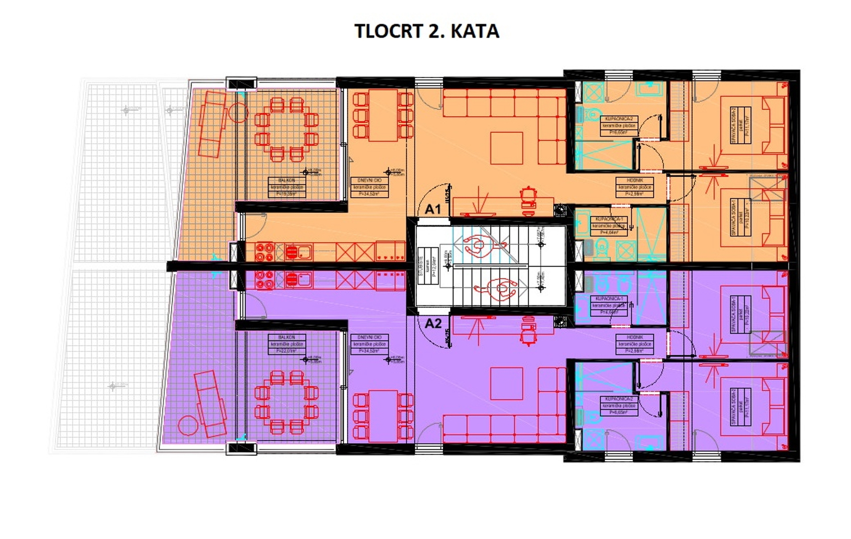 Pag – Šimuni, Zweizimmerwohnung mit 100,69 m2 zu verkaufen im zweiten Stock eines im Bau befindlichen Wohngebäudes mit insgesamt sechs Wohnungen, hochwertige Bauweise, Fußbodenheizung in den Badezimmern, Klimaanlage in allen Zimmern, Glasgeländer auf den Terrassen, Sicherheits- und Brandschutztüren usw.
