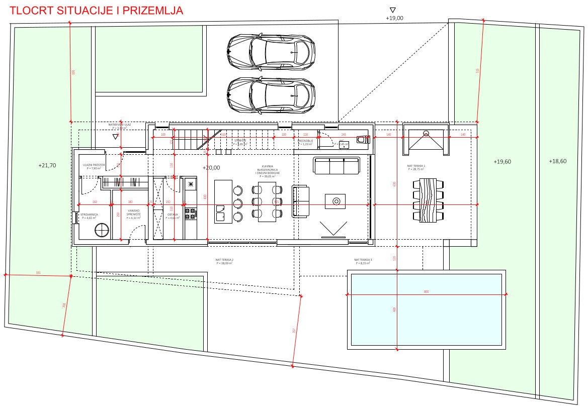 Das Grundstück hat eine regelmäßige Form mit Abmessungen von ca. 20m x 25m, feste Zufahrtsstraße, Strom und Wasser daneben. Im Preis inbegriffen ist eine Baugenehmigung für den Bau einer einstöckigen Villa mit 184,75 m2 Grundfläche – 155,50 m2 Nutzfläche, sowie die Zahlung aller Neben- und Wasserbeiträge.
