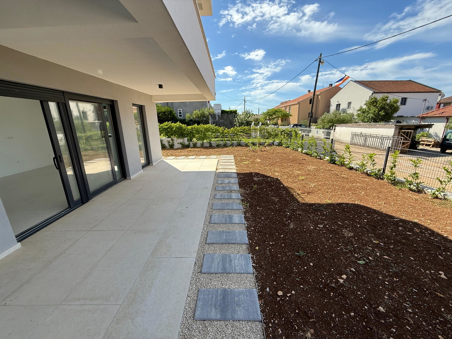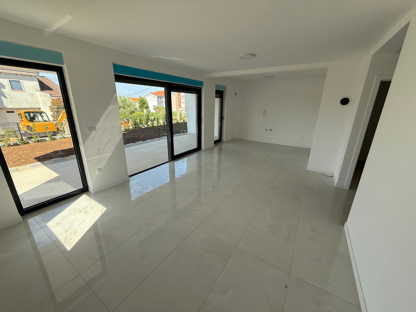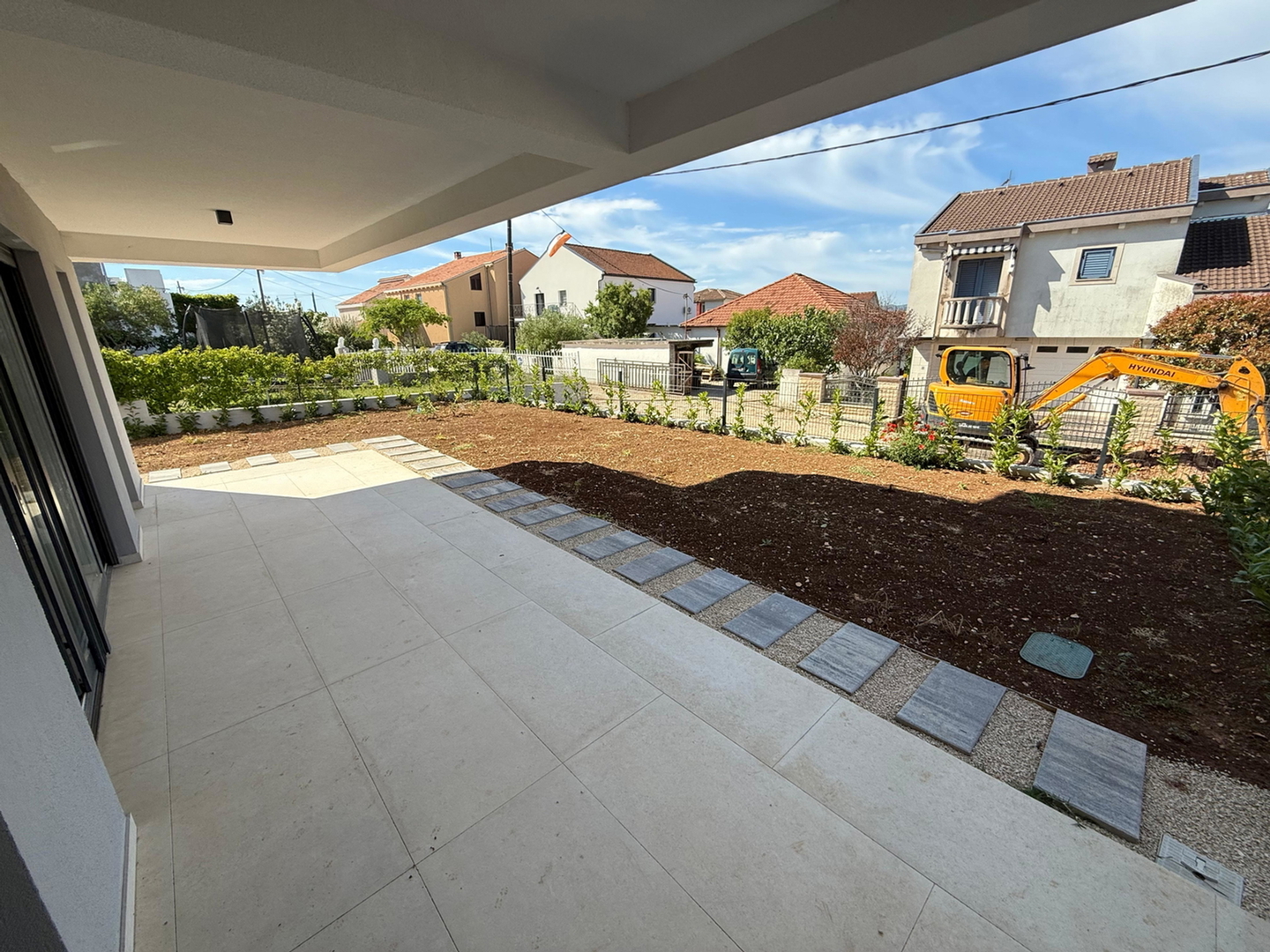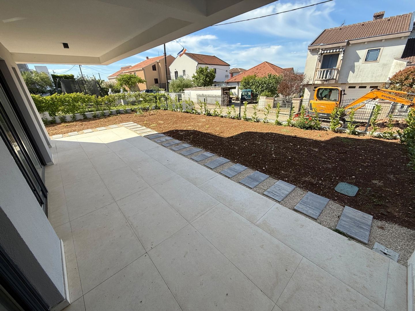 Zadar – Diklo, Drei-Zimmer-Wohnung mit 118 m2 zu verkaufen im Erdgeschoss eines Wohngebäudes, Baujahr 2025, hochwertige Bauweise, Thermofassade, Videoüberwachung, Klimaanlage in jedem Zimmer, elektrische Rollläden, Moskitonetze zum Schutz vor Insekten, Video-Gegensprechanlage, Sicherheitstüren, Fußbodenheizung, Aufzug usw.