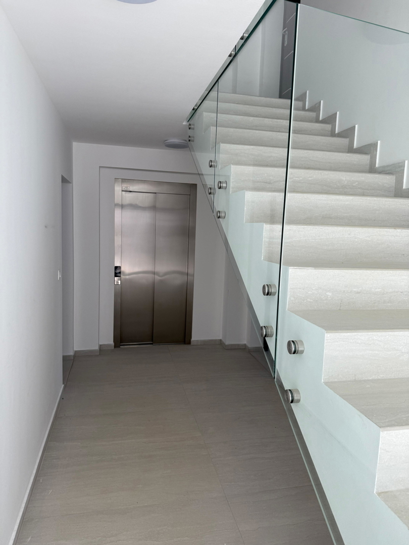 Es besteht aus: drei Schlafzimmern, Wohnzimmer + Küche + Esszimmer, Flur, Speisekammer, zwei Badezimmern und Terrasse.