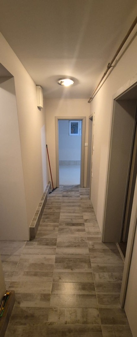 Es besteht aus: zwei Schlafzimmern, Wohnzimmer, Küche, Flur, Hauswirtschaftsraum und Badezimmer.