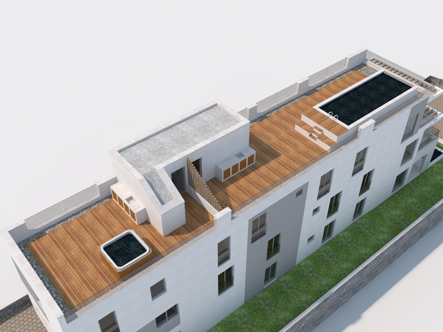 Es verfügt über einen Parkplatz, eine Dachterrasse und einen Abstellraum.