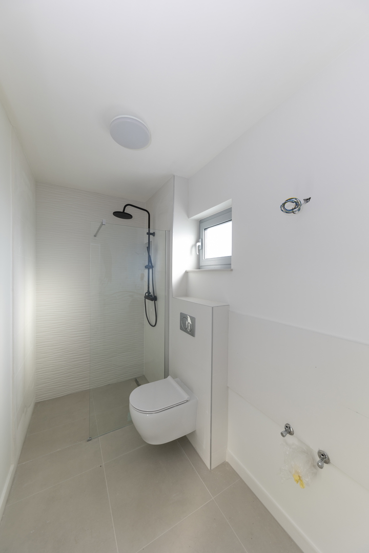 – erster Stock: ein Schlafzimmer, Wohnzimmer + Küche + Esszimmer, Waschküche, Toilette und Loggia.