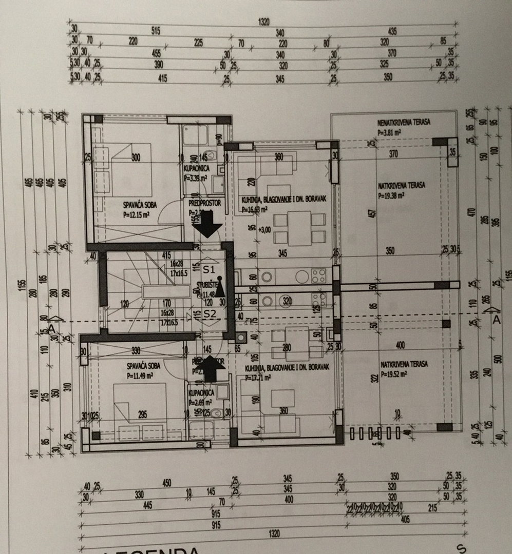 Es besteht aus zwei nebeneinander liegenden Häusern mit zwölf separaten Wohnungen, Keller, Erdgeschoss, erster Stock und zweiter Stock.