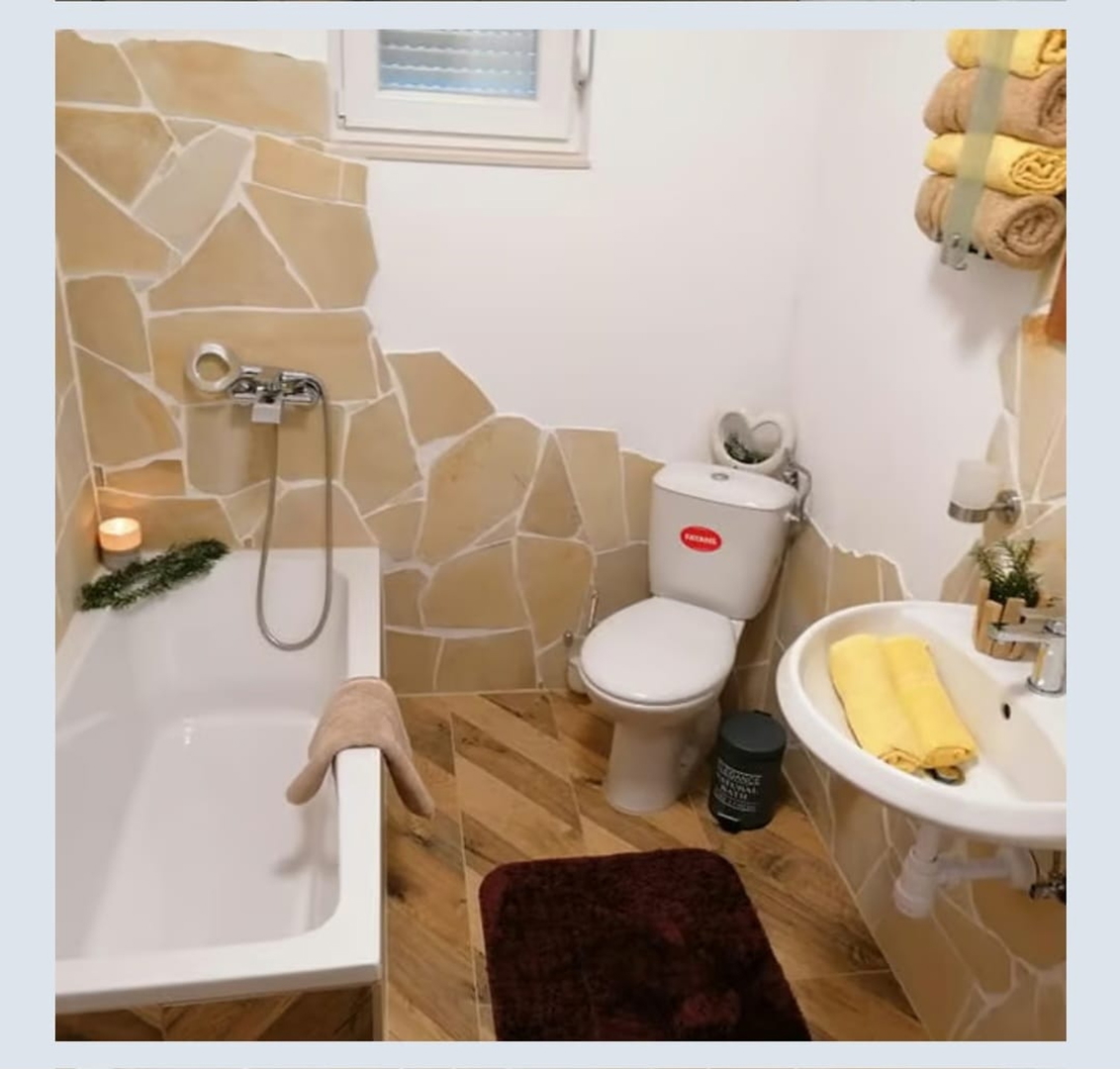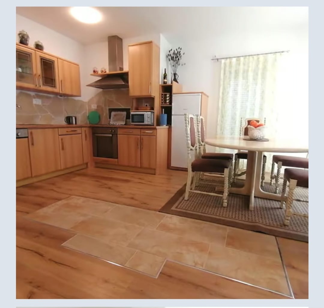 Es befindet sich in einer guten Lage, 580 m vom Meer und Strand entfernt, in der Nähe von Geschäften, Restaurants, Cafés und allen anderen Einrichtungen, die für einen angenehmen und ruhigen Urlaub erforderlich sind!!