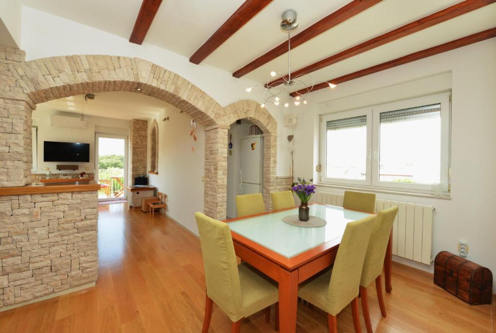 Es befindet sich in ausgezeichneter Lage, 230 m vom Meer und Strand entfernt, in der Nähe von Geschäften, dem Stadtzentrum, dem Krankenhaus und allen anderen Einrichtungen, die für ein angenehmes Leben und einen angenehmen Urlaub notwendig sind!!!