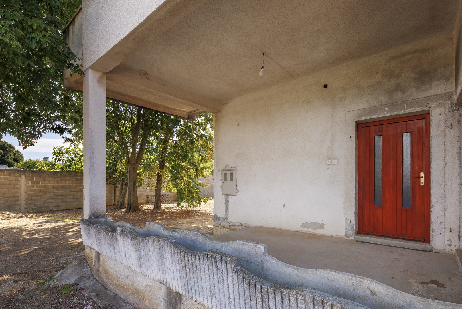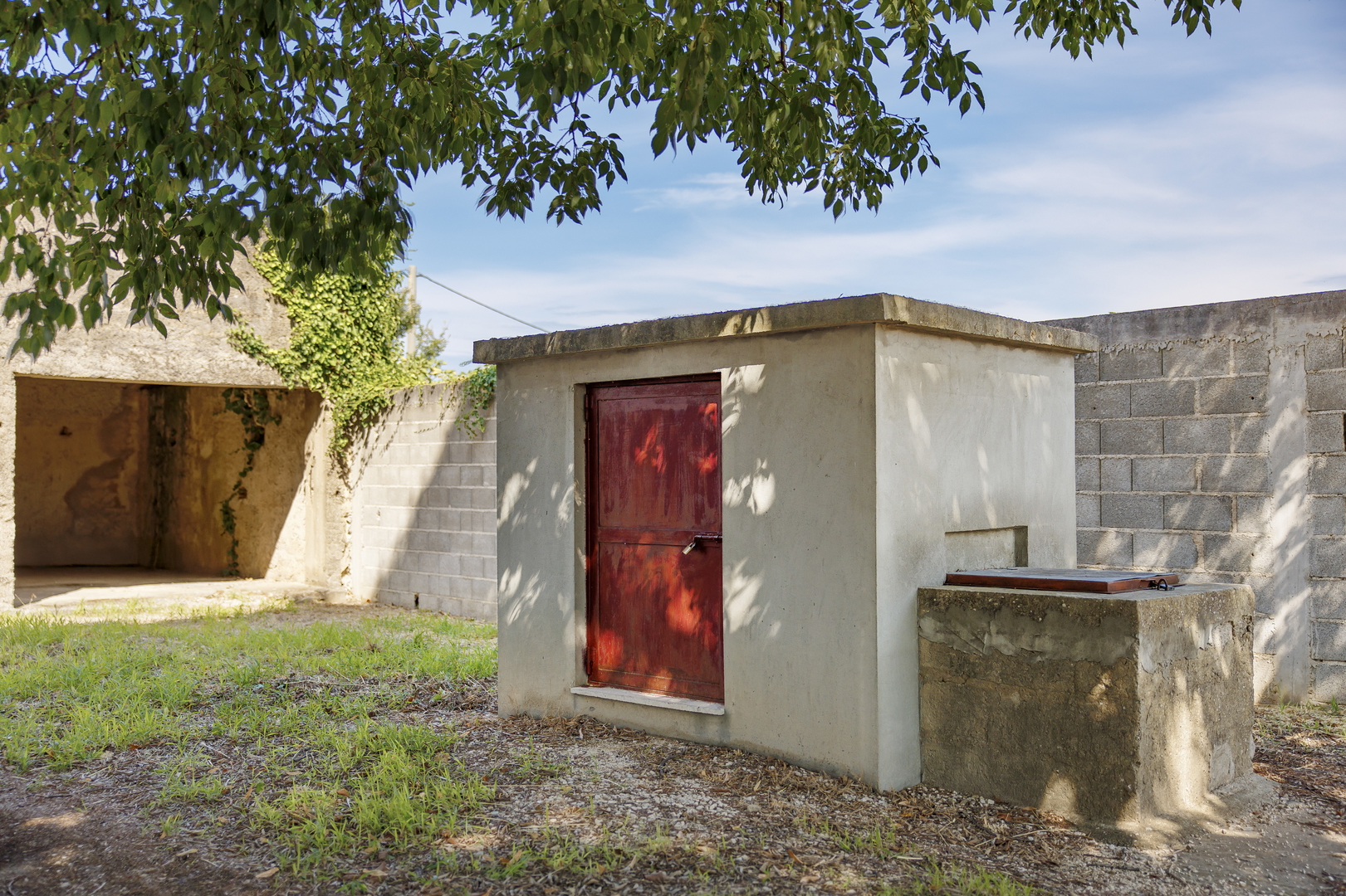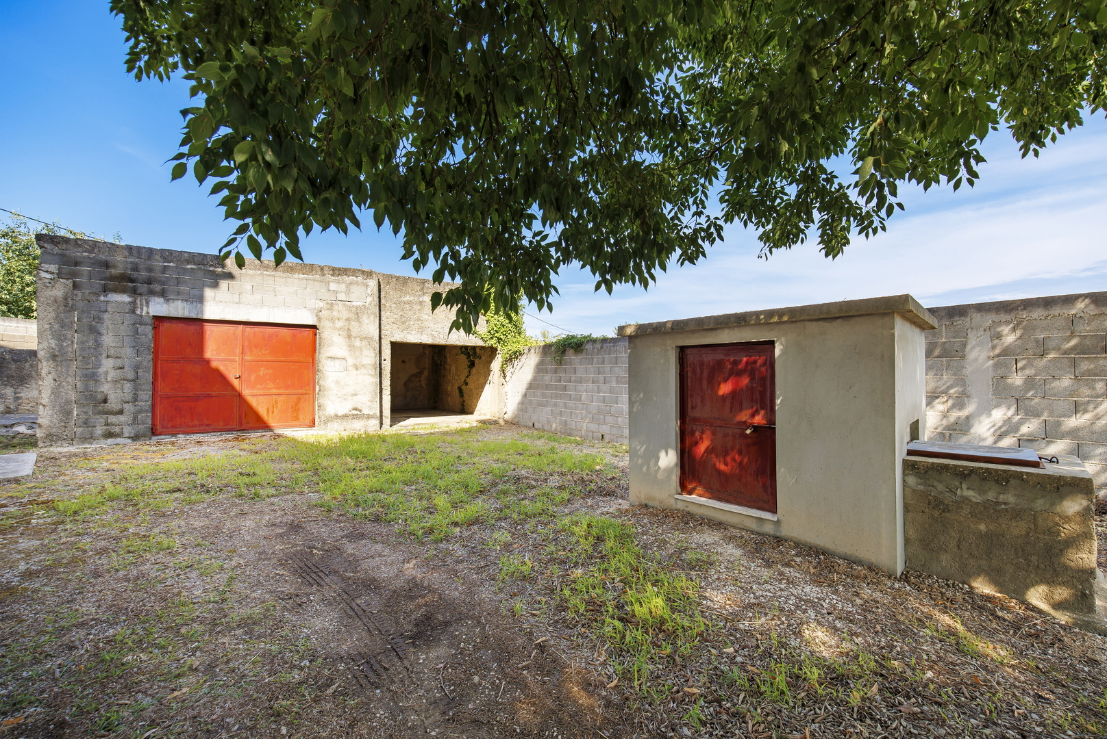 Es verfügt über zwei Garagen mit einer Gesamtfläche von 105 m², mehrere Parkplätze und einen Brunnen.