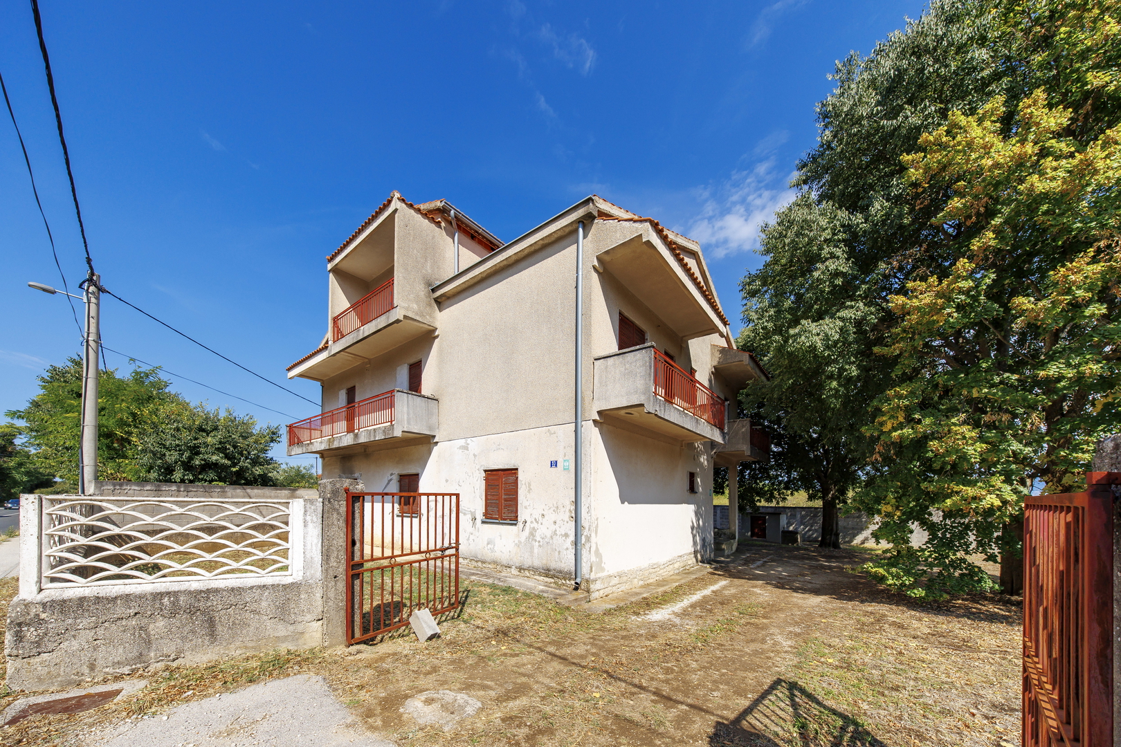 Zadar – Smilčić, ein freistehendes zweistöckiges Haus mit 470 m² Wohnfläche und 536 m² Garten, Baujahr 1988, auf einem 784 m² großen Grundstück. Es ist renovierungsbedürftig, das Dach ist gedeckt, Wasser- und Elektroinstallationen sind vorhanden, Erdgeschoss und Obergeschoss sind verputzt.