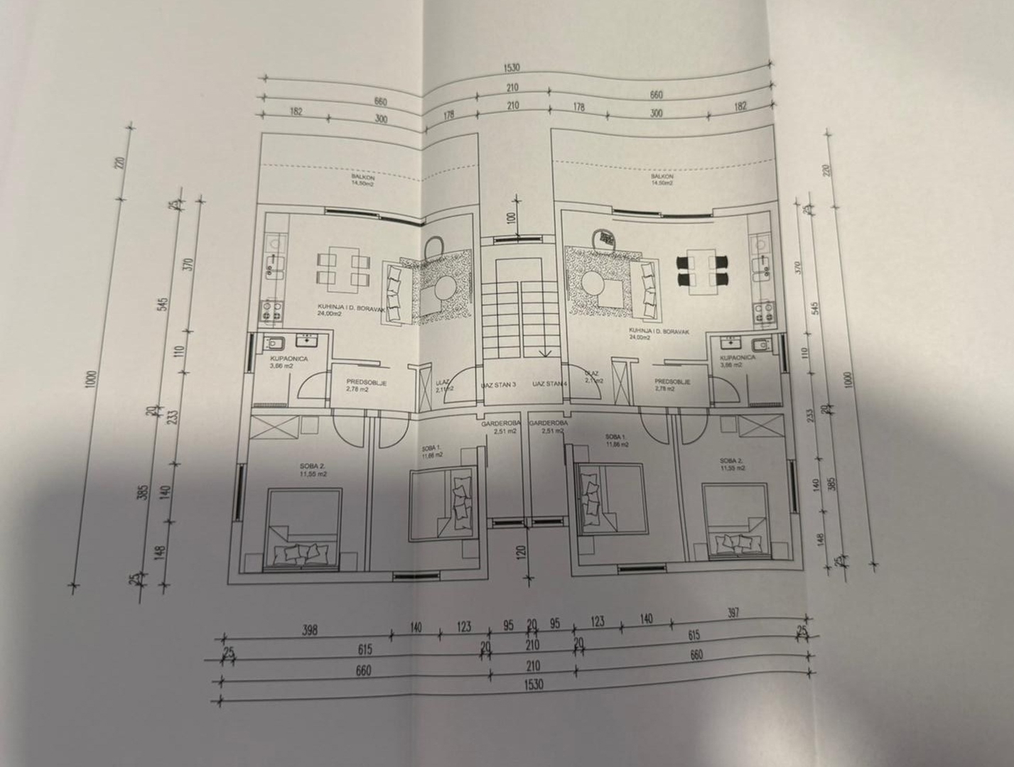 Es liegt eine gültige Baugenehmigung für ein Gebäude mit vier Wohnungen vor.