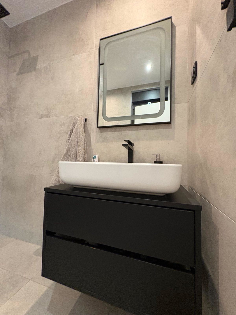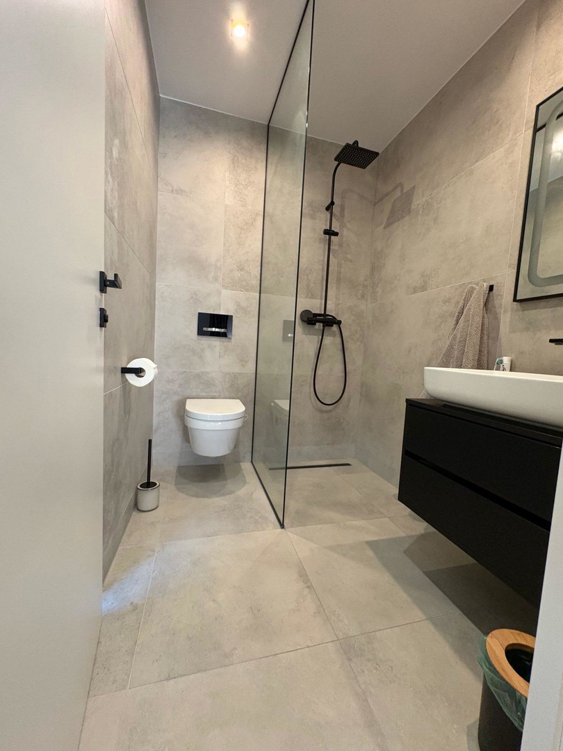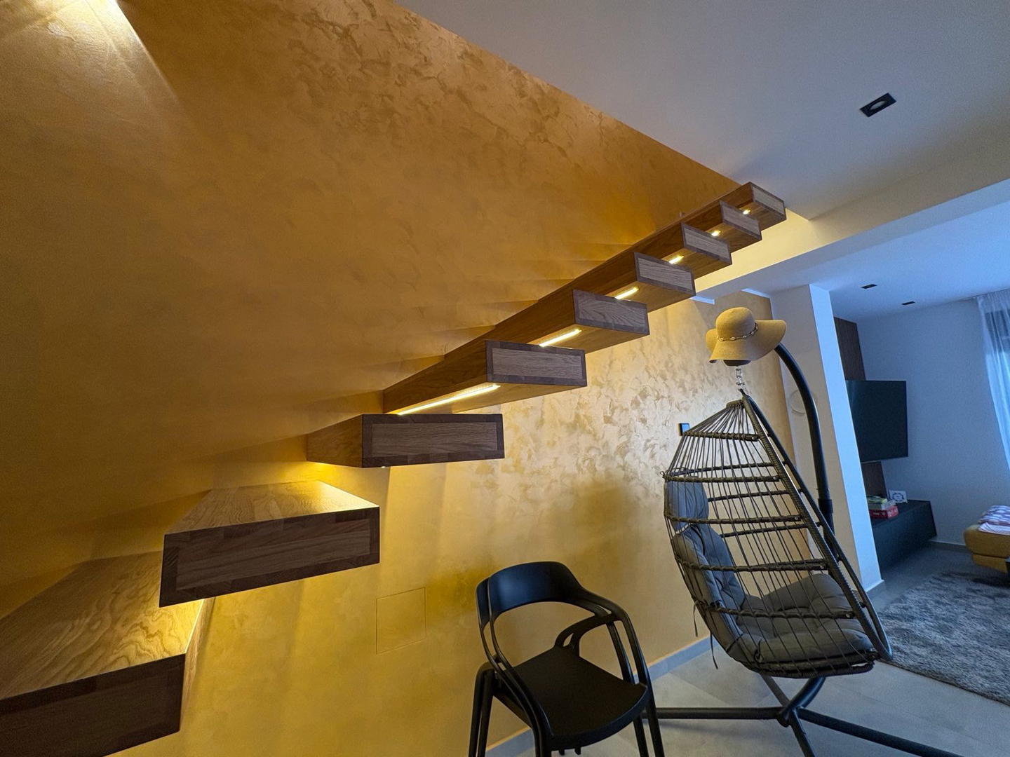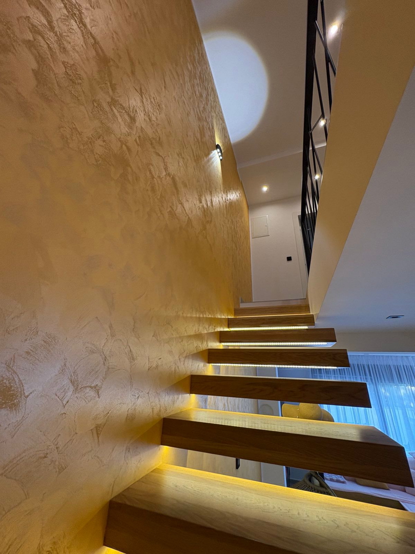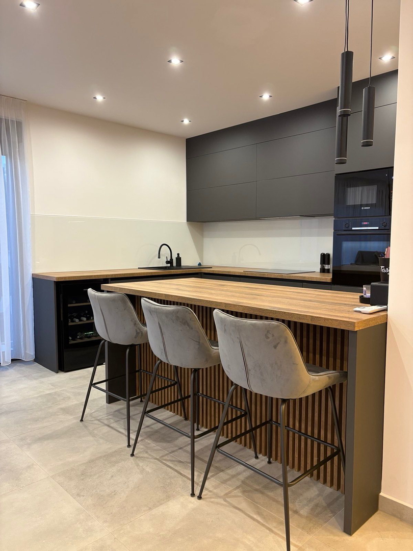 – Erdgeschoss: Wohnzimmer + Küche + Esszimmer, Speisekammer, Badezimmer und Terrasse.