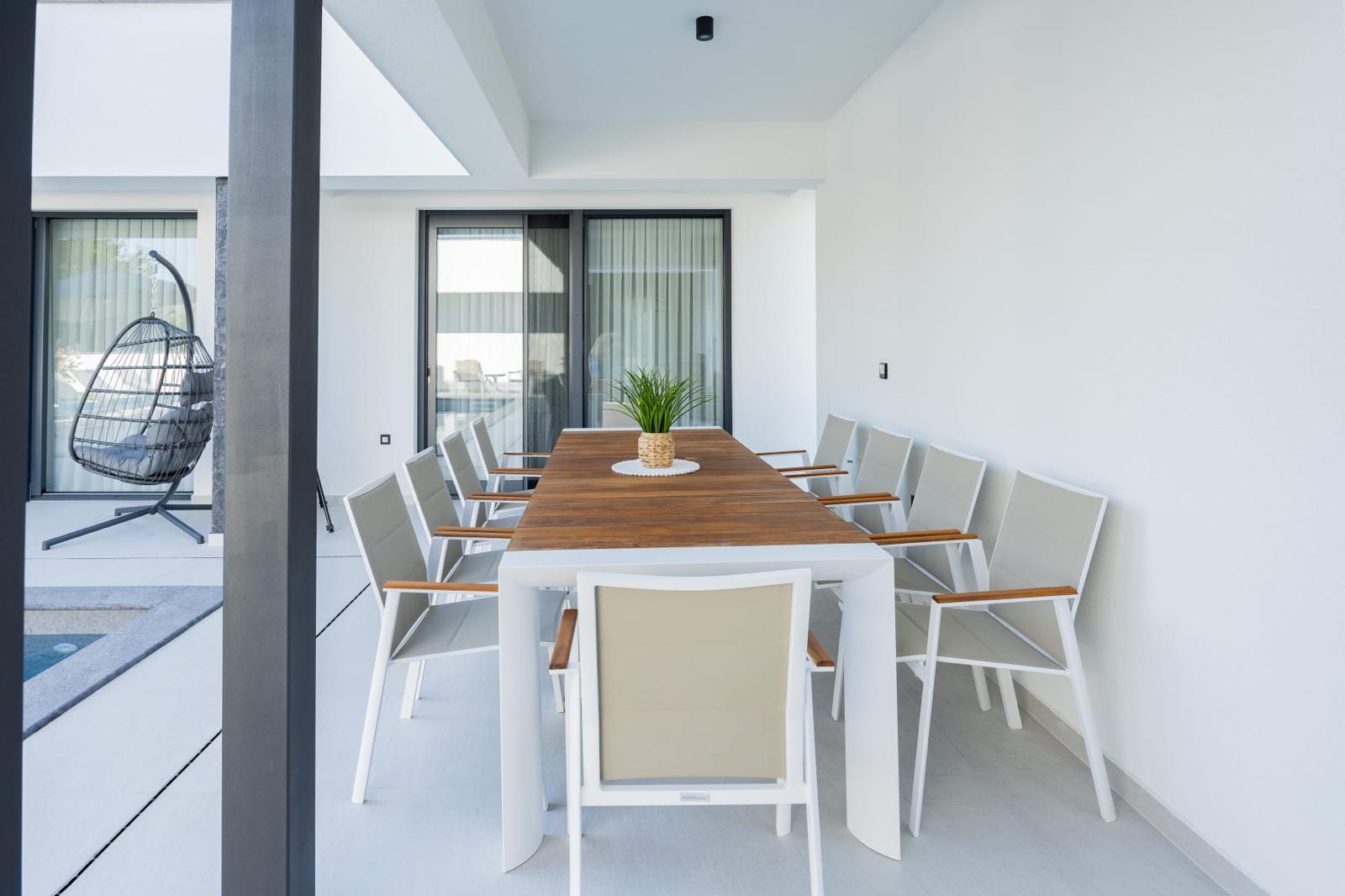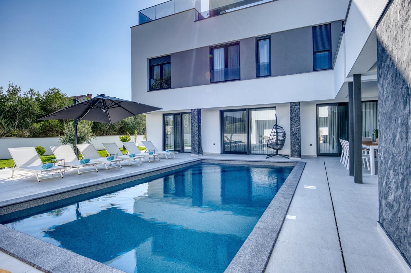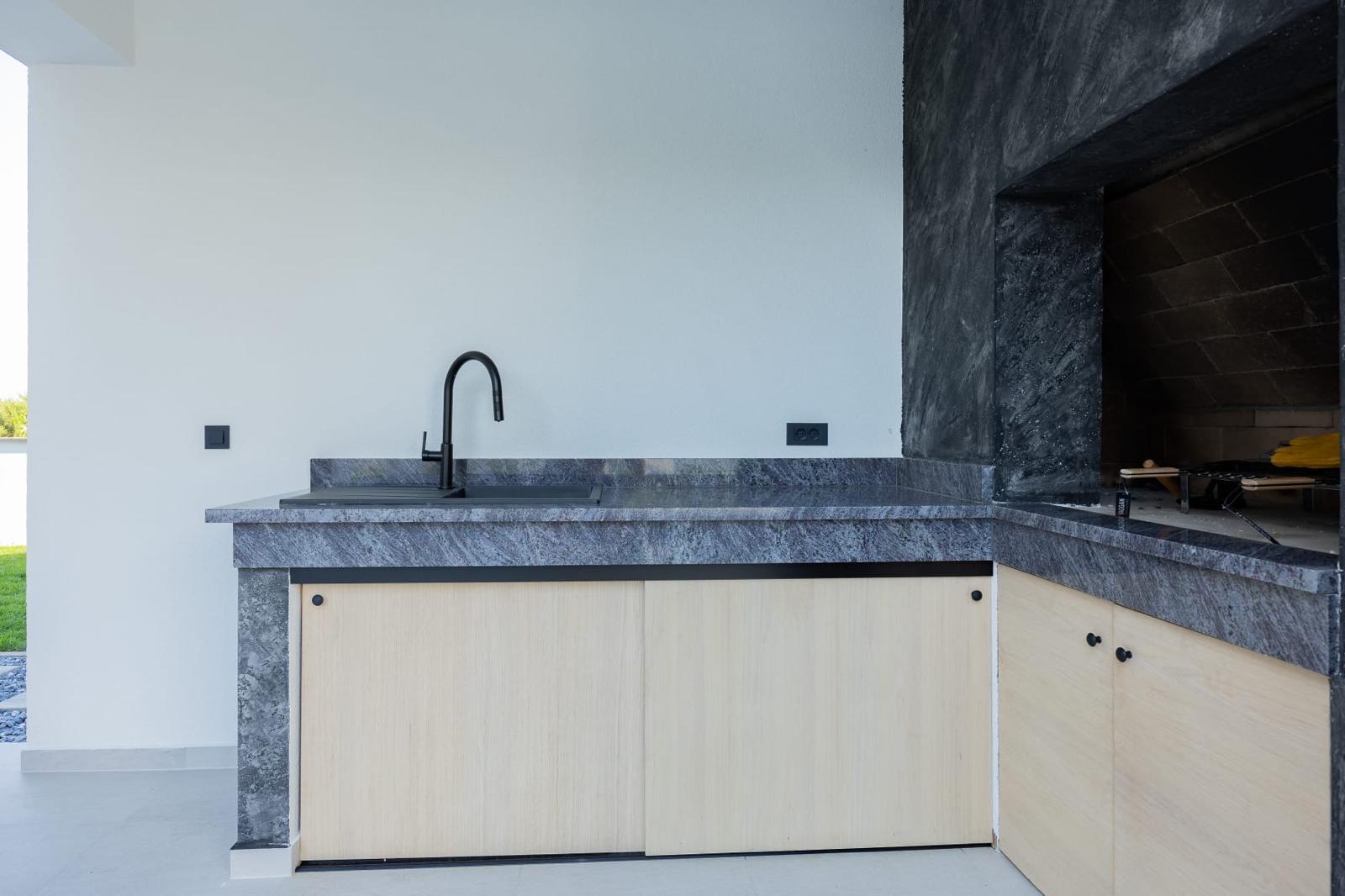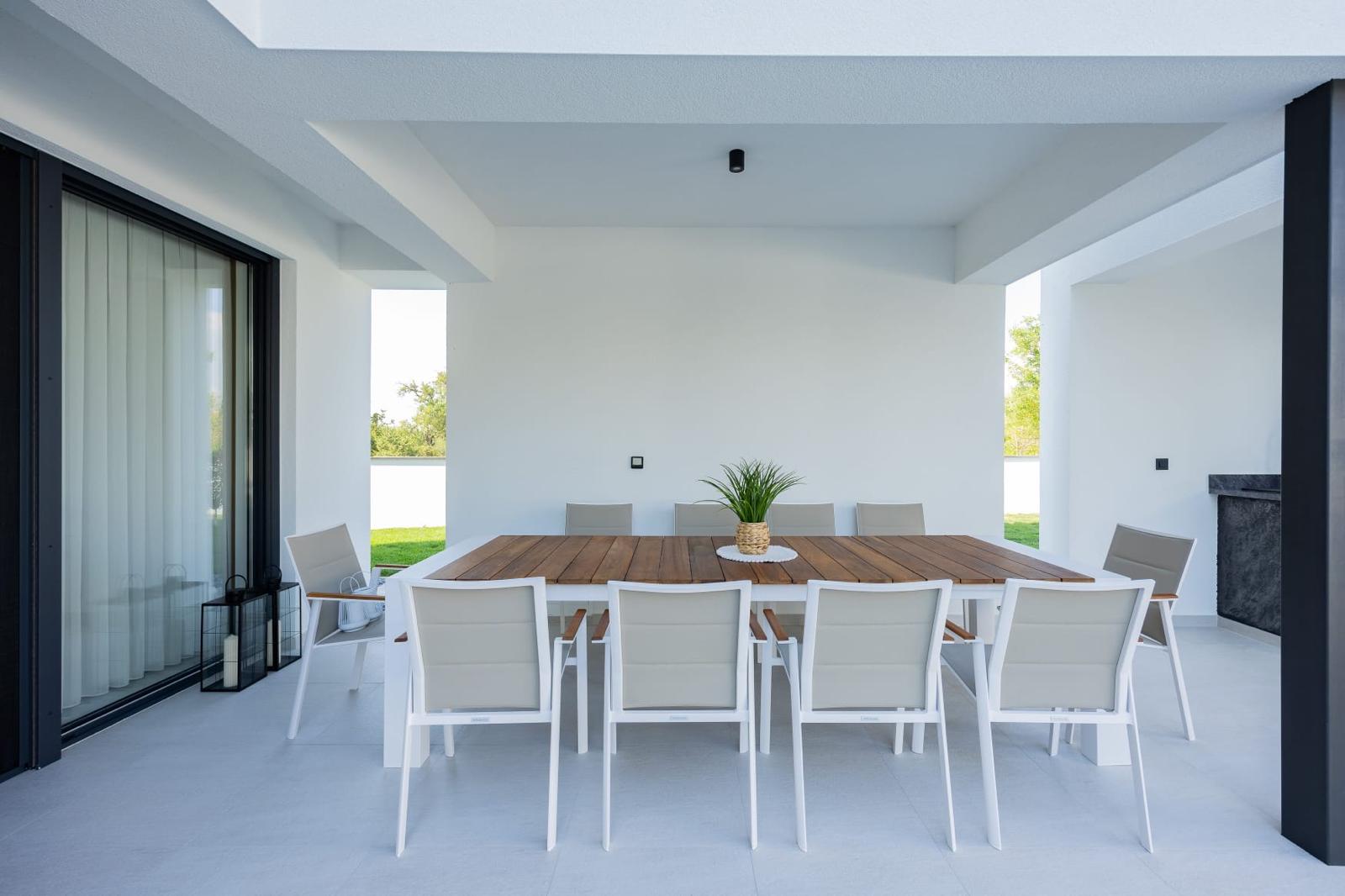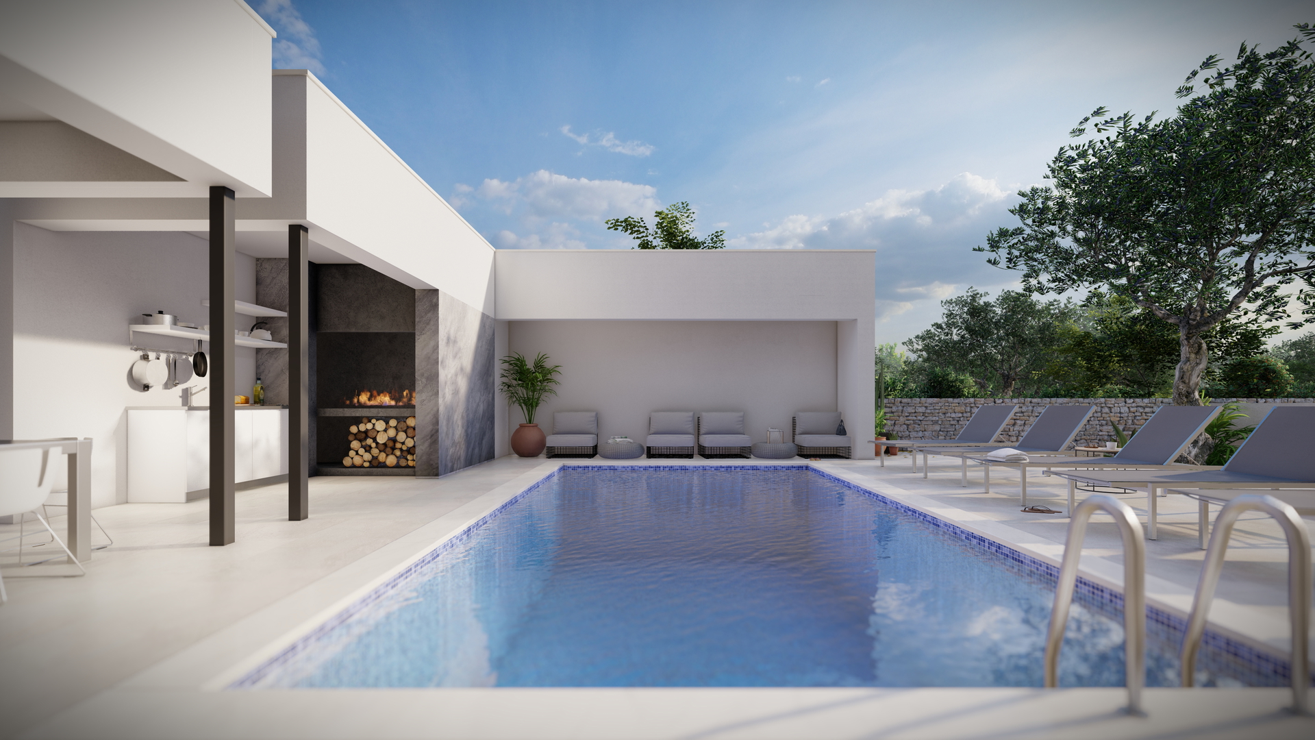 Zadar – Zaton, zu verkaufen: freistehende Villa mit einer Wohnfläche von 234,23 m2, Baujahr 2024 auf einem Grundstück von 761 m2, hochwertige Konstruktion, gebaut mit Protherm-Ziegeln, Platten und Balken und Säulen aus Stahlbeton, Wärmedämmung (Fassade) 10 und 15 cm dick, PVC-Zimmerei in Anthrazitfarbe außen und Weiß im Gebäude, Heben und Senken von elektrischen Jalousien, Heizung des Gebäudes und des Sanitärwassers über eine Wärmepumpe, Kühlung und Zusatzheizung über eine Klimaanlage, Ableitung von Fäkalienwasser in einen biologischen Reiniger, Spannung dreiphasig 13,80 kW, Schwimmbecken aus Stahlbeton (Außenbecken im Hof des Gebäudes, 1,5 m tief, und ein kleineres Becken auf der Dachterrasse, 1 m tief), gleichzeitig wird eine Wärmepumpe zur Erwärmung des Poolwassers installiert, und in der Anlage wird eine Videoüberwachung installiert. Der Swimmingpool im Hof des Gebäudes ist so gelegen, dass er geschlossen werden kann (bioklimatische Pergola oder Markise und Glaswände), etc…