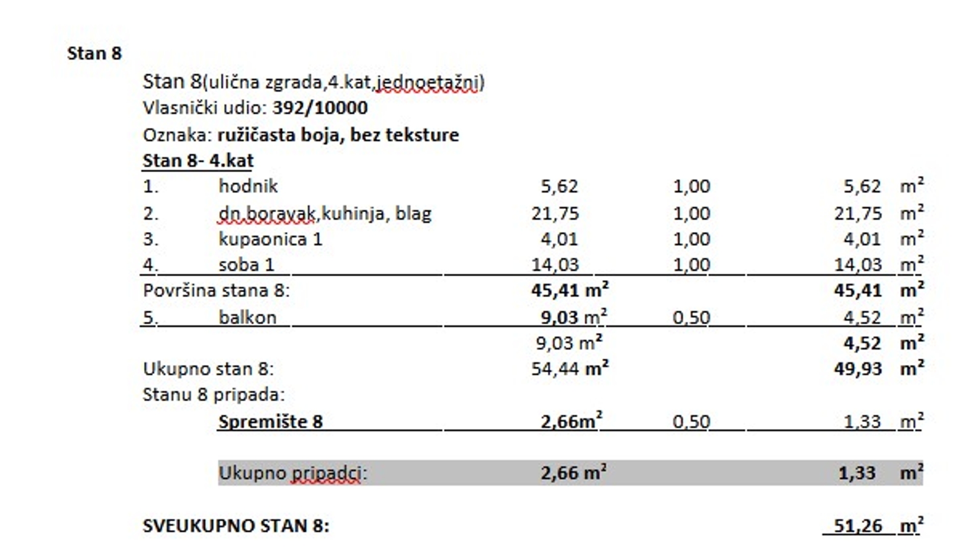 Es besteht aus: einem Schlafzimmer, Wohnzimmer + Küche + Esszimmer, Flur, Badezimmer und Balkon.