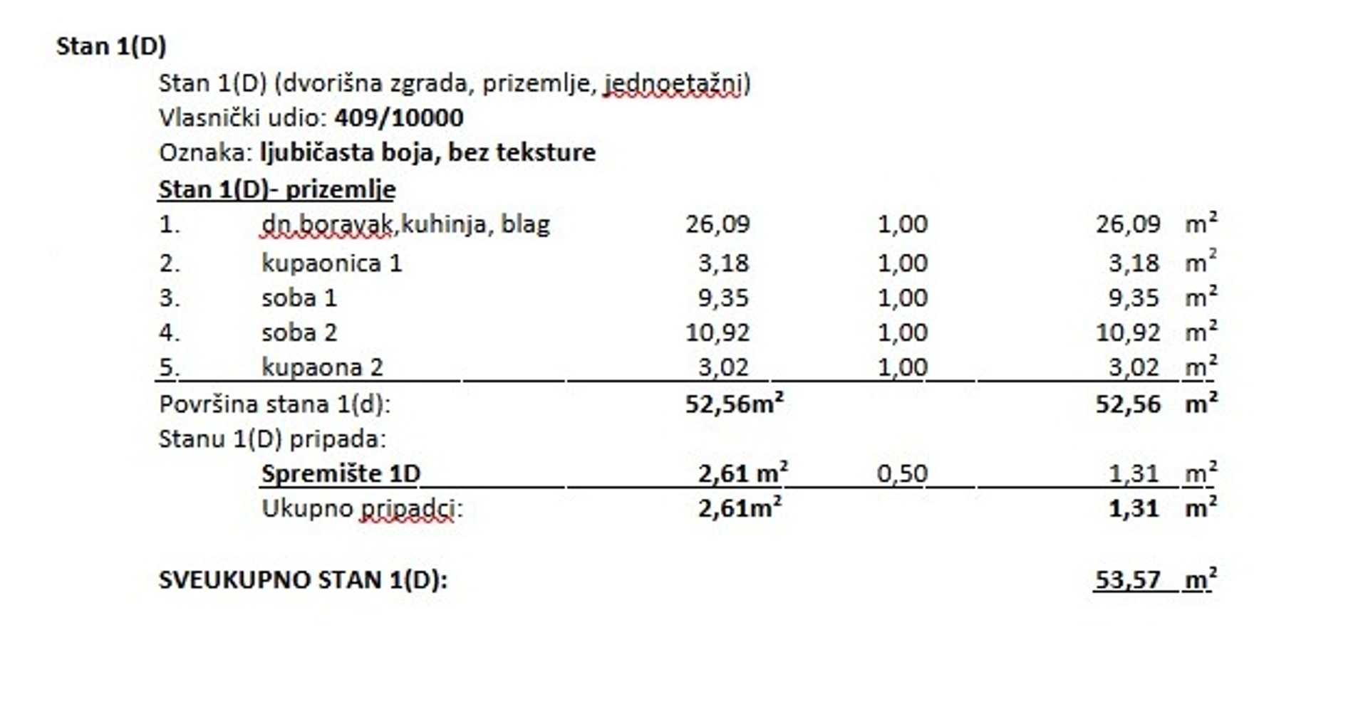 Es besteht aus: zwei Schlafzimmern, Wohnzimmer + Küche + Esszimmer, Flur und zwei Badezimmern.
