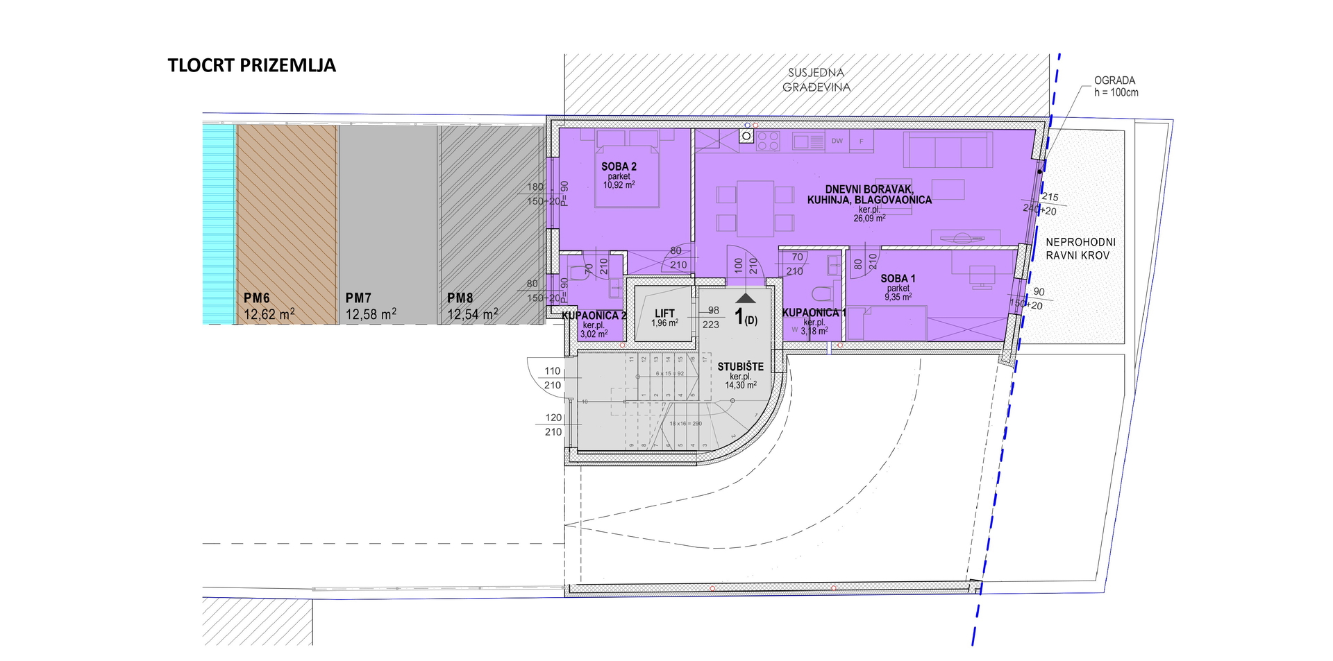 Zagreb – Trešnjevka, Dreizimmerwohnung von 53,57 m2 im Erdgeschoss eines im Bau befindlichen Wohngebäudes zu verkaufen, geplanter Einzugstermin 03/2026.