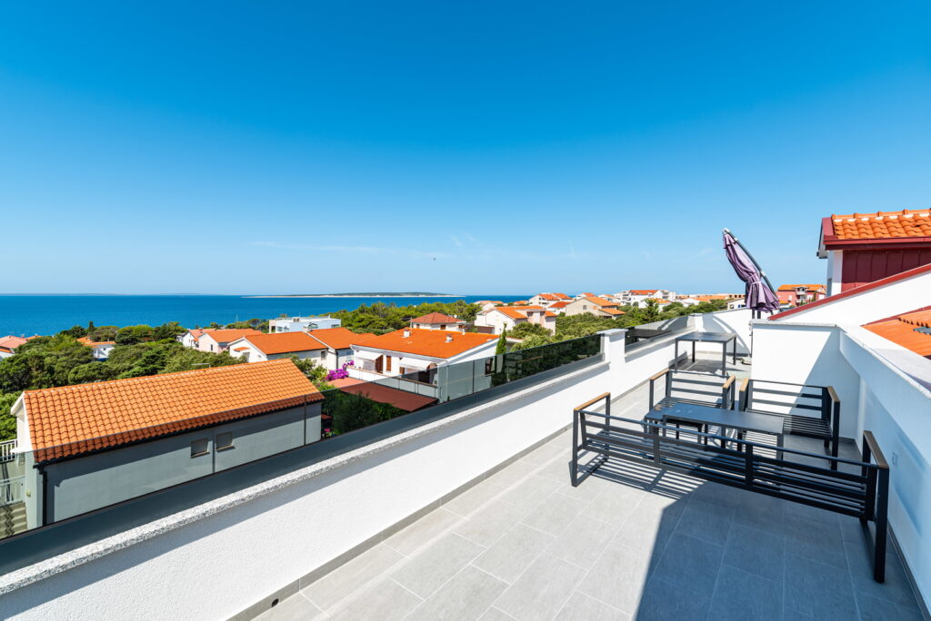 Pag – Mandre, Dreizimmerwohnung von 146,37 m2 zum Verkauf im Dachgeschoss eines 2022 erbauten Wohnhauses mit insgesamt sieben Wohnungen, komplett neu eingerichtet. . Es besteht aus: drei Schlafzimmern, Wohnzimmer + Küche + Esszimmer, Flur, zwei Badezimmern, Abstellraum und zwei überdachten Terrassen. . DER MEERBLICK WIRD AUS DER WOHNUNG ANGEBOTEN!!! . Es befindet sich in ausgezeichneter […]