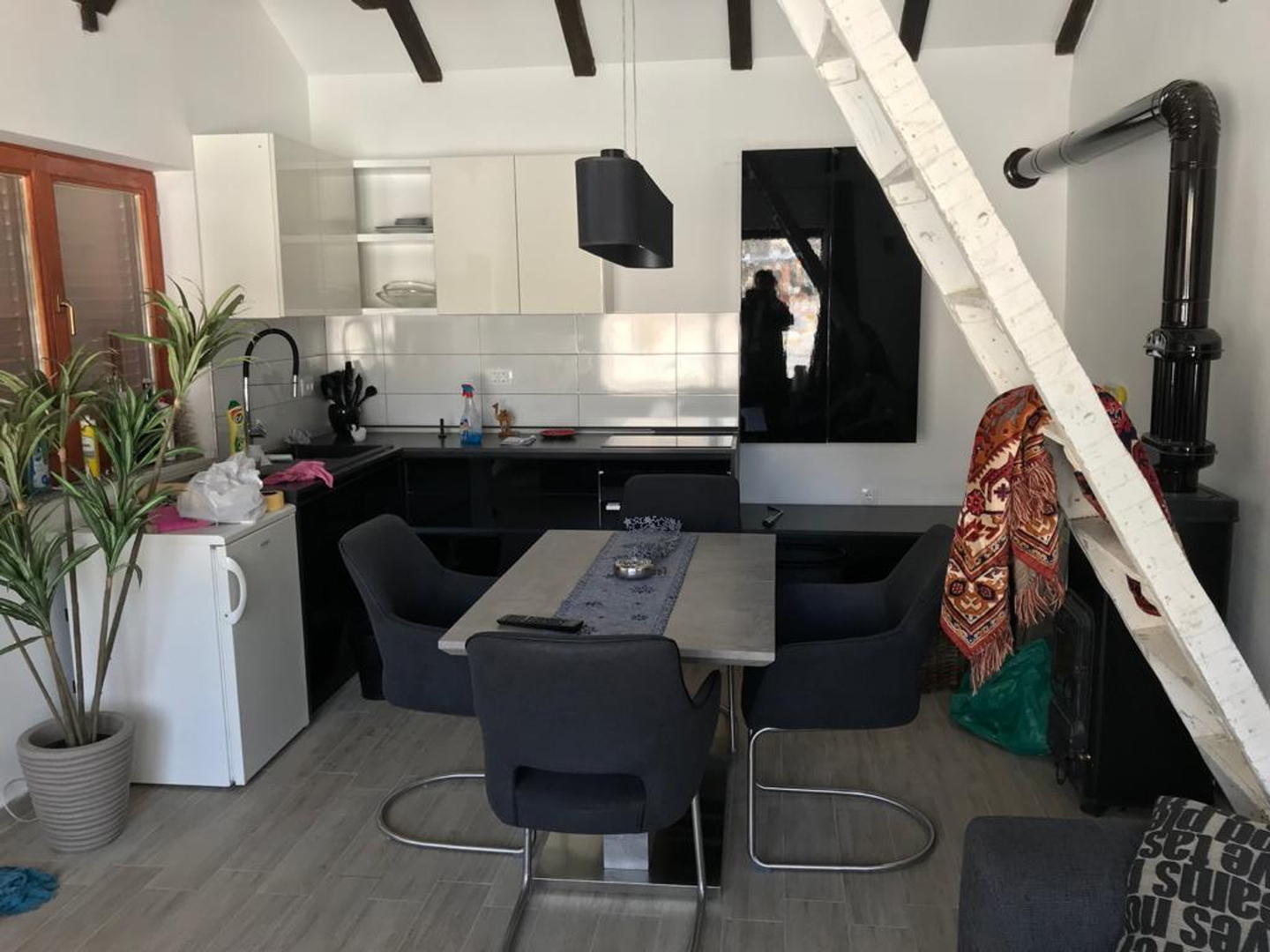 – ground floor: living room + kitchen + dining room and toilet.