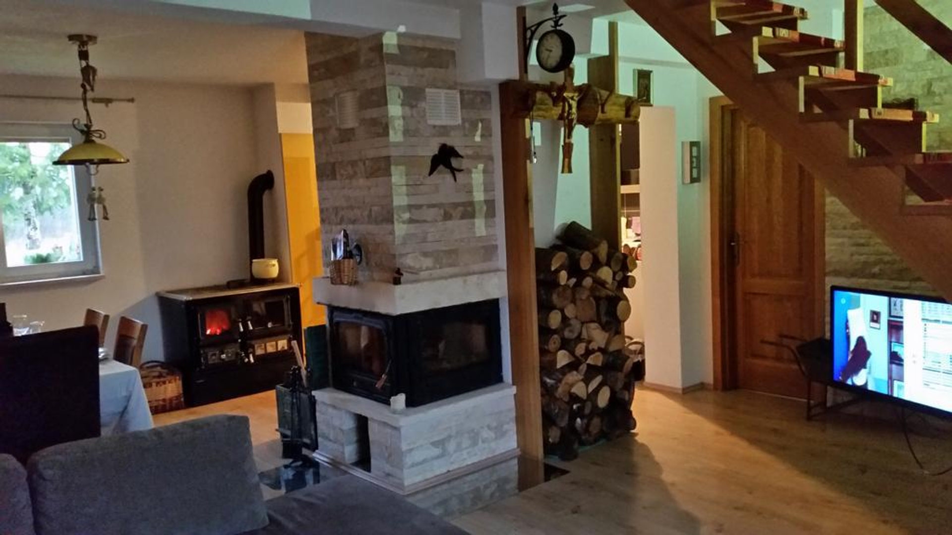 The house has underfloor heating and wood burning.