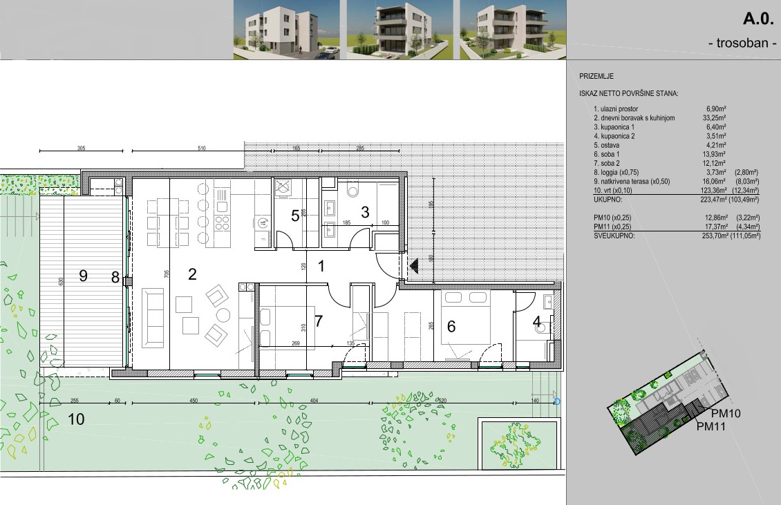 Novalja, two-bedroom apartment of 111.05 m2 for sale on the ground floor of a residential building with a total of six apartments built in 2024, high-quality construction, underfloor heating throughout the apartment, top quality joinery, etc…