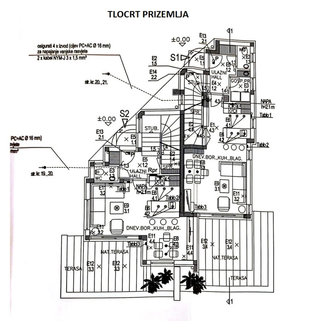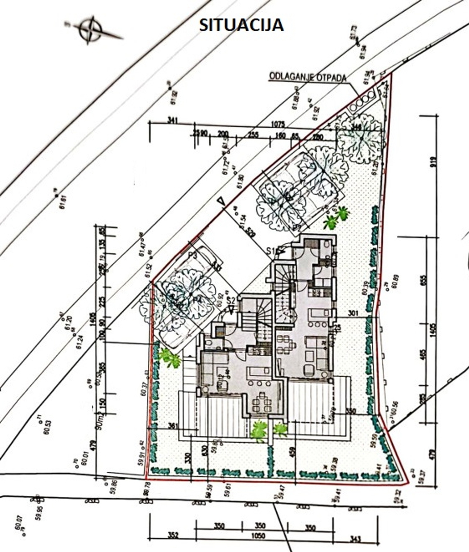 – ground floor: living room + kitchen + dining room, hallway, master bedroom, toilet, storage room and covered terrace.