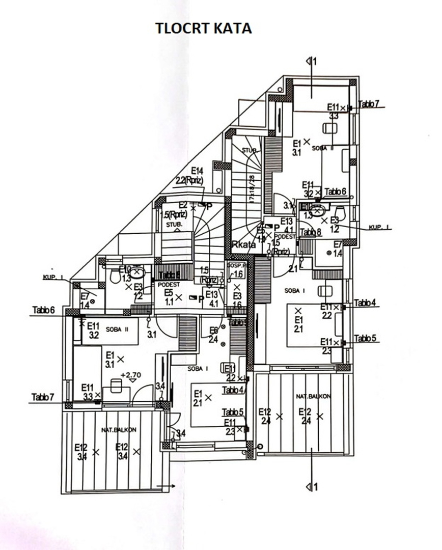 – first floor: two bedrooms, hallway, bathroom and balcony.