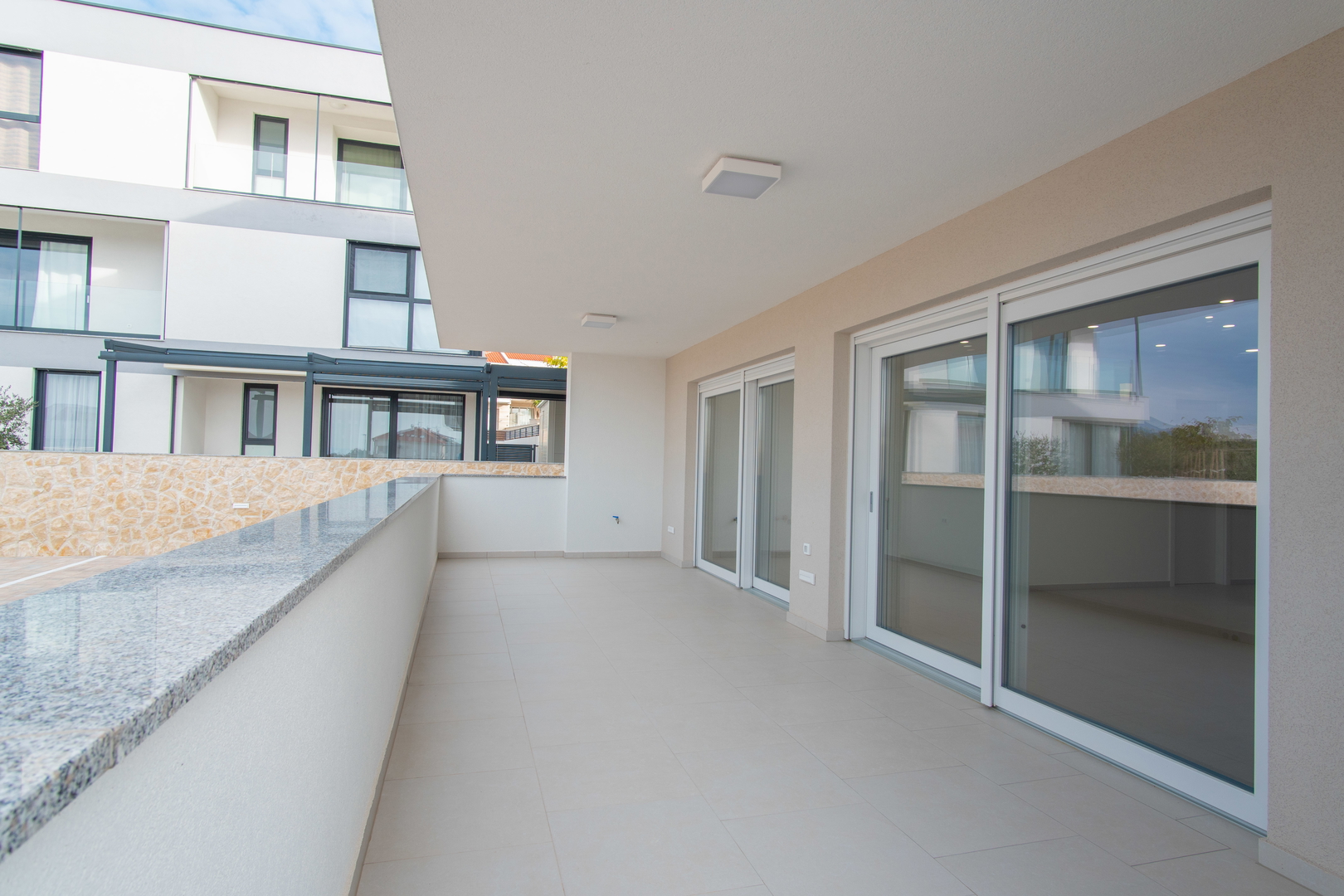 *TERRACES: large spacious terrace, covered terrace, tap (for washing the terrace), SIKA waterproofing, power sockets, intimate lighting built into the terrace fence, large format ceramics