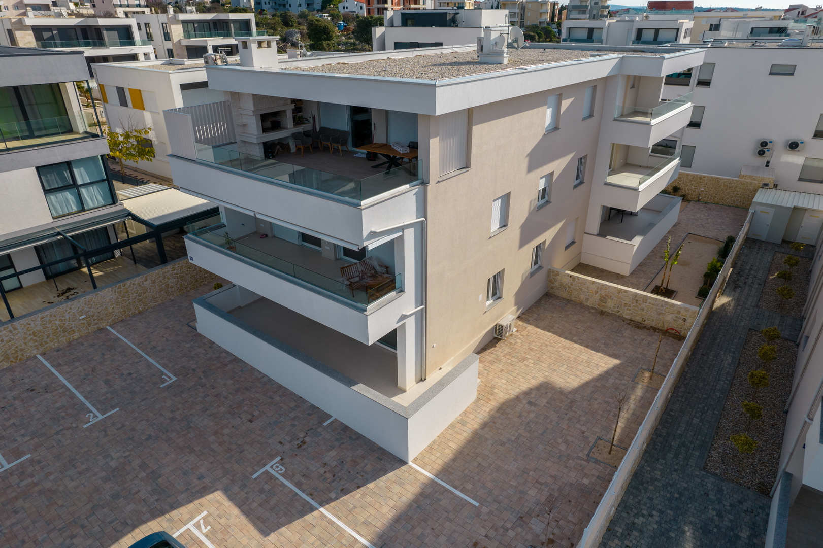 *PARKING: each apartment has 2 parking spaces, large format pavers, wall lighting